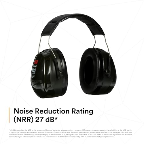 3M PELTOR Hearing Protection Optime 101 Earmuffs, Over the Head, H7A, 27 dB NRR, Adjustable Earcups, E-A-Rfit Compatible, Stainless Steel, Pack of 1, Black/Red
