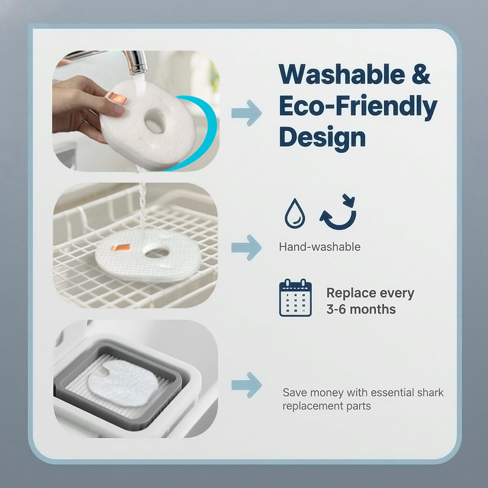 - 【Washable & Eco-Friendly Design】: Hand-washable shark vacuum accessories save you money! Rinse filters monthly, air dry & reuse. Replace every 3-6 months for peak performance as essential shark replacement parts