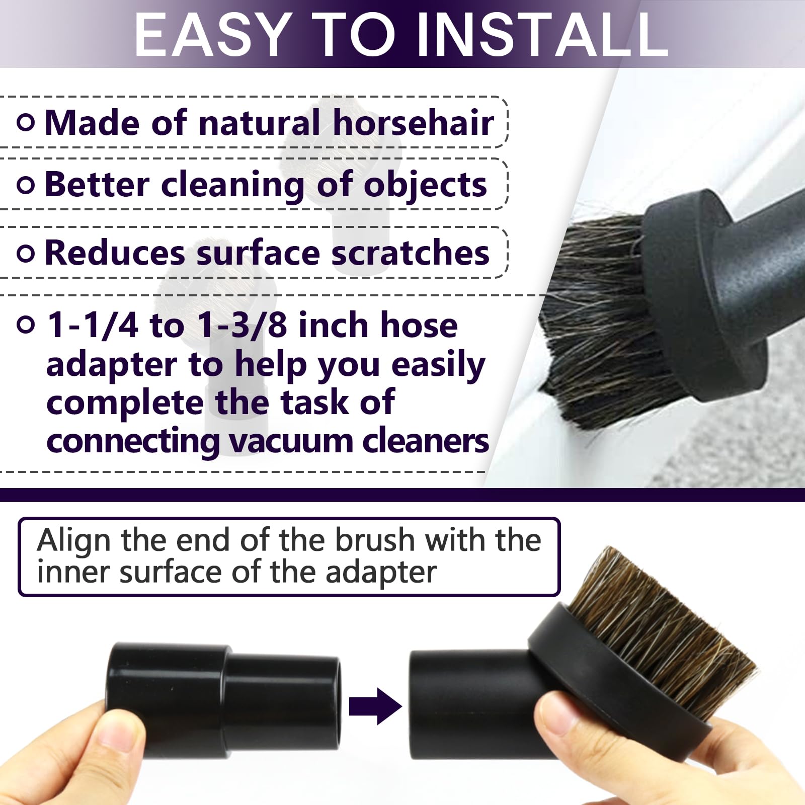 - Superior Performance: Enhance the functionality of your vacuum cleaner with the chaseroad horse hair brush attachments, designed to meet the needs of discerning customers seeking quality and performance. Whether you're cleaning carpets, upholstery, or hard-to-reach corners, these brushes deliver exceptional performance and precision, making your vacuuming tasks a breeze.