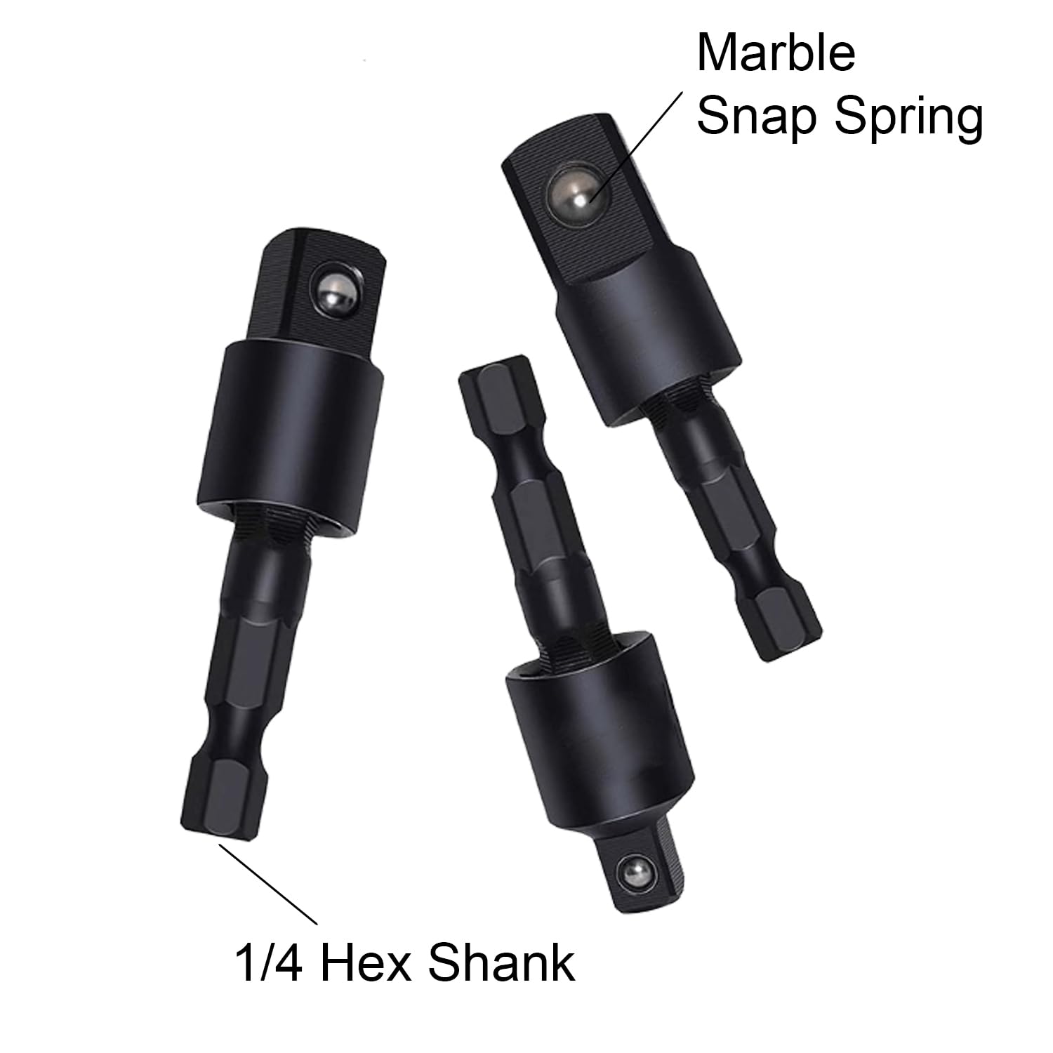 - 360° Rotatable Socket Adapters Efficient Torque Distribution: The 360° rotation spreads torque evenly, reducing wear and improving performance. Access to Tight Spaces: Perfect for reaching narrow workspaces. Versatile Use: Compatible with pneumatic and electric screwdrivers, drills, and other hexagonal tools.