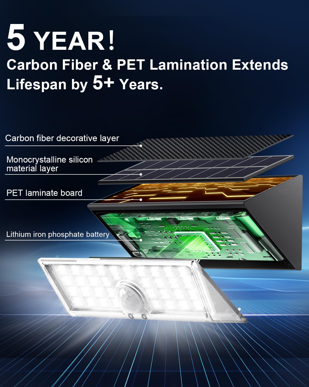 - Monocrystalline Silicon Cells: vs. polycrystalline, charging efficiency increased from 12% to 28%. Ensures stable charging even on cloudy/rainy days. A 6-hour daytime charge enables 8-10h automatic night lighting, delivering optimal comfort.