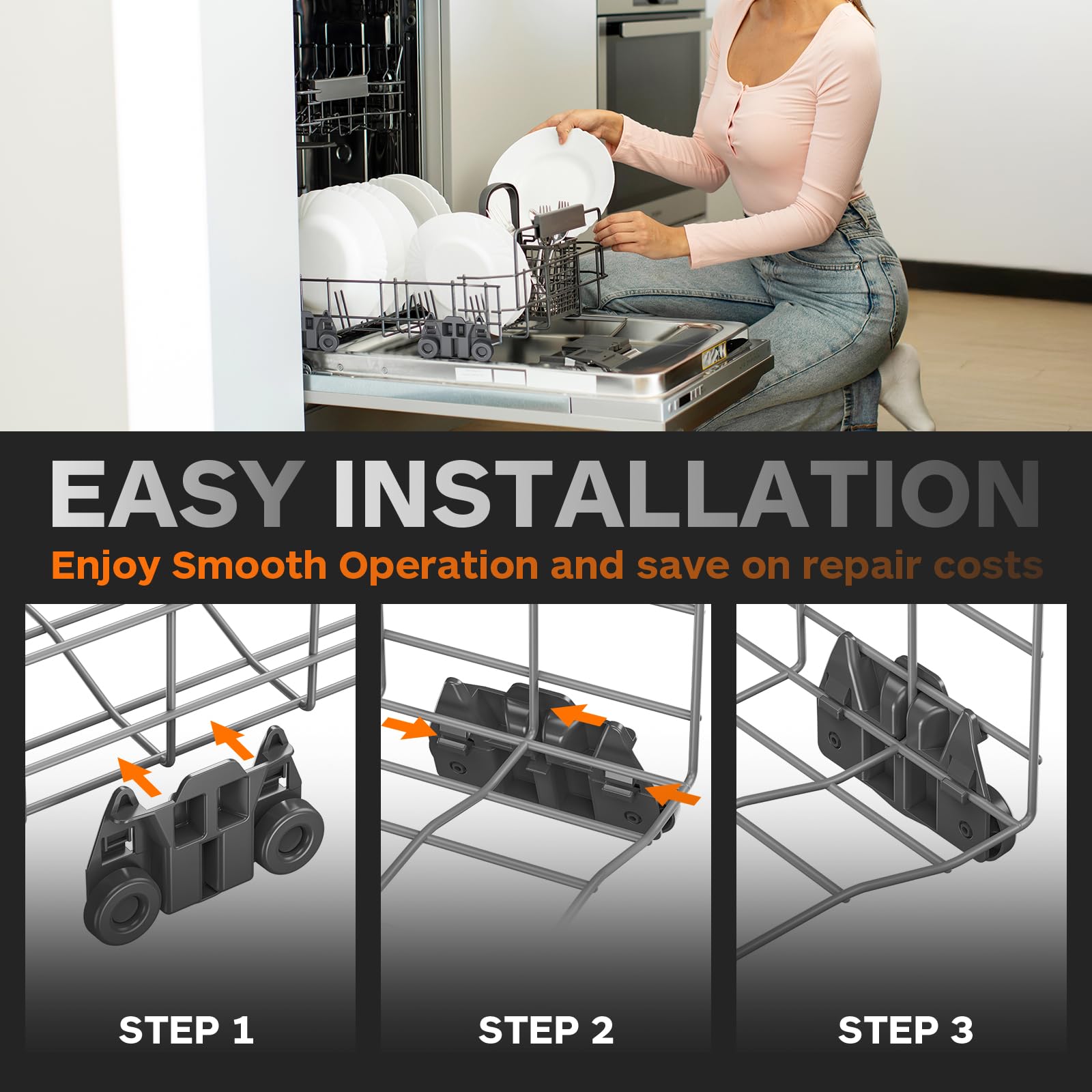 - Easy Tool-Free Installation: Our dishwasher lower rack wheels are designed for effortless installation; Simply snap dishwasher wheels into place, and your dishwasher will be back in action, providing a seamless upgrade experience that saves you time