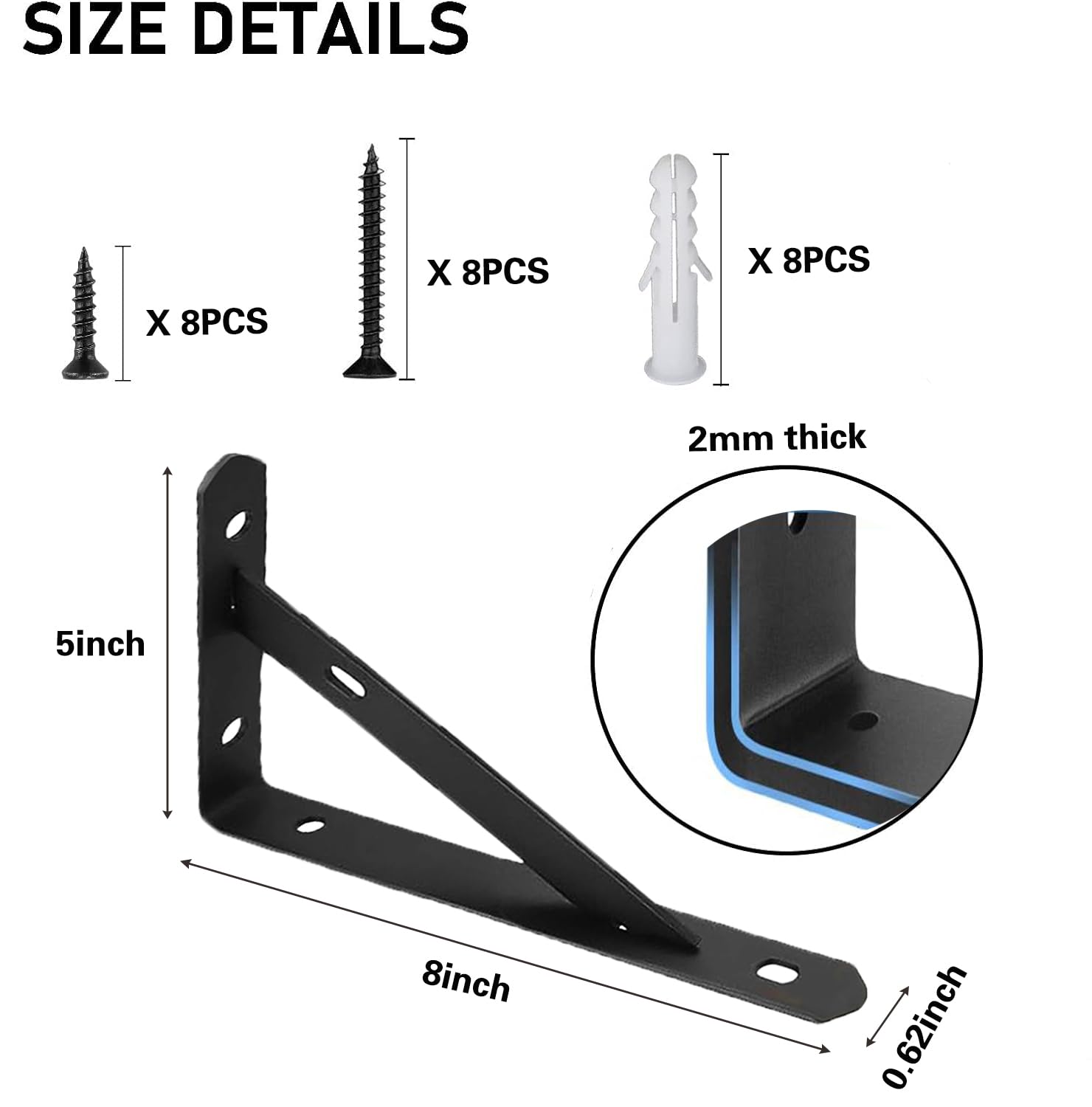 - Bracket Dimensions:L8" x H 5" x W 0.62",0.08"(2mm)Thick. 80lbs.(36kgs) max weight capacity.