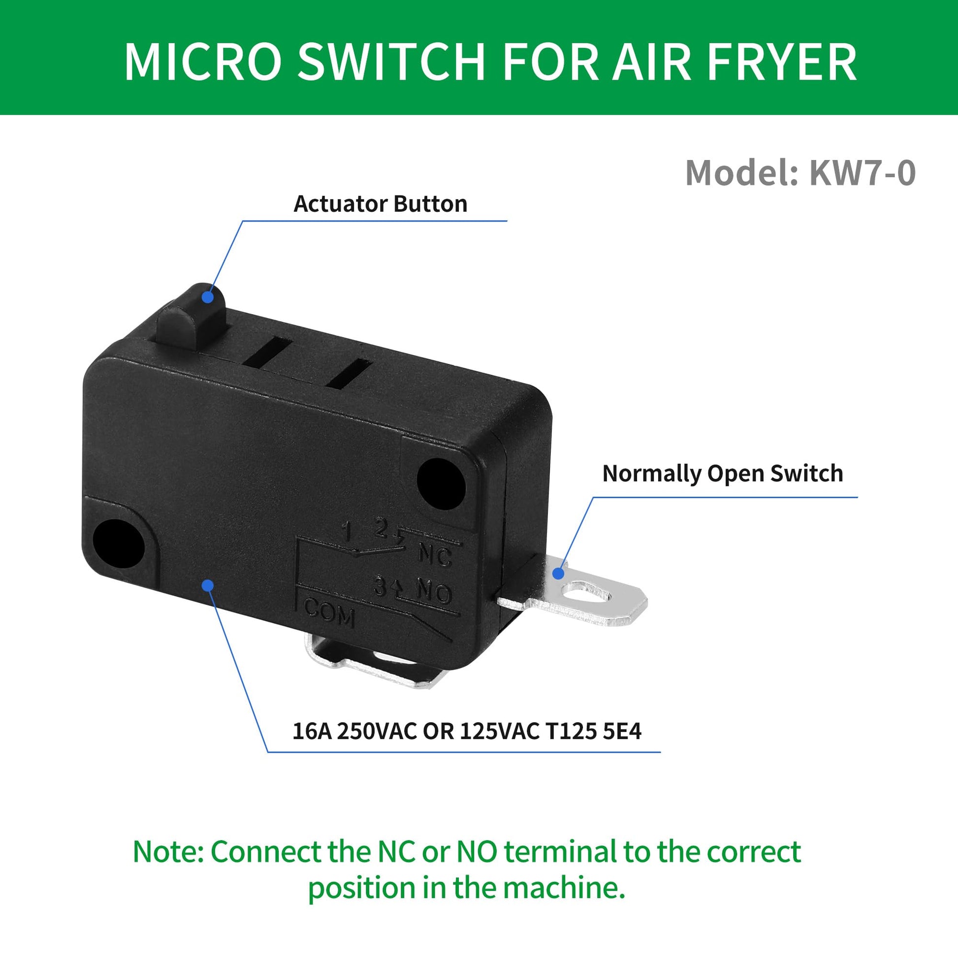 Details: This KW7-0 micro switch is a versatile, high-performance replacement part compatible with a variety of appliances, including air fryers, microwave ovens, and induction cookers.