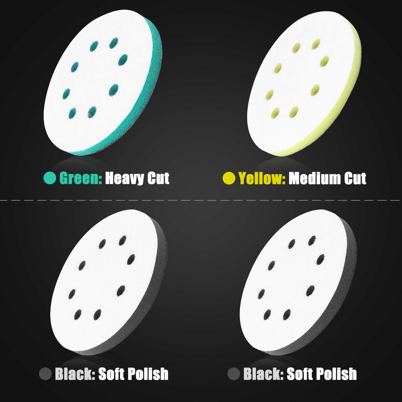 - Multiple Hardness: 5-inch foam sanding pads for orbital sander with 3 different hardness options for cutting and finishing. Stackable soft black pads are available for added versatility. Choose the right hardness for optimal sanding.