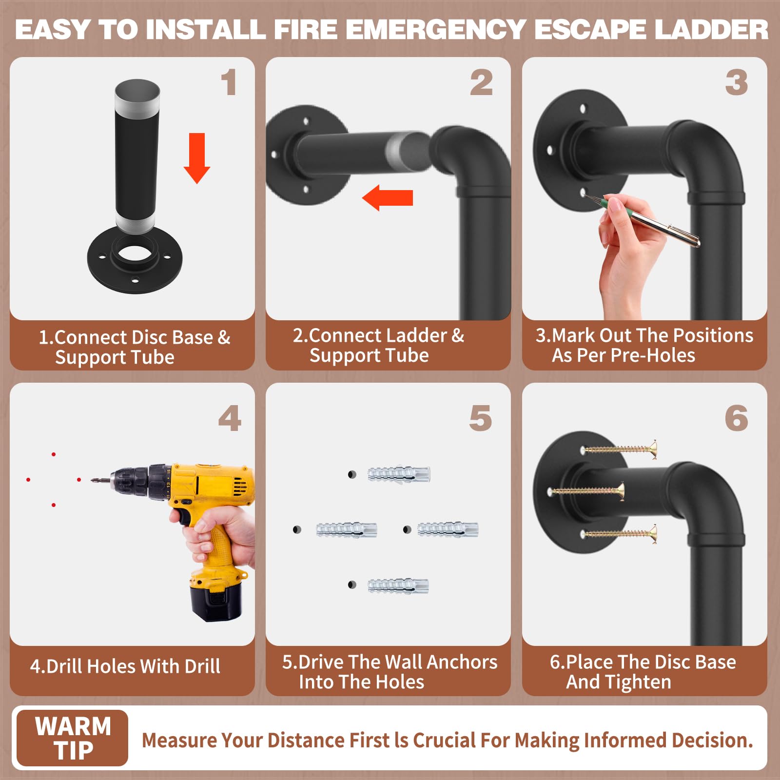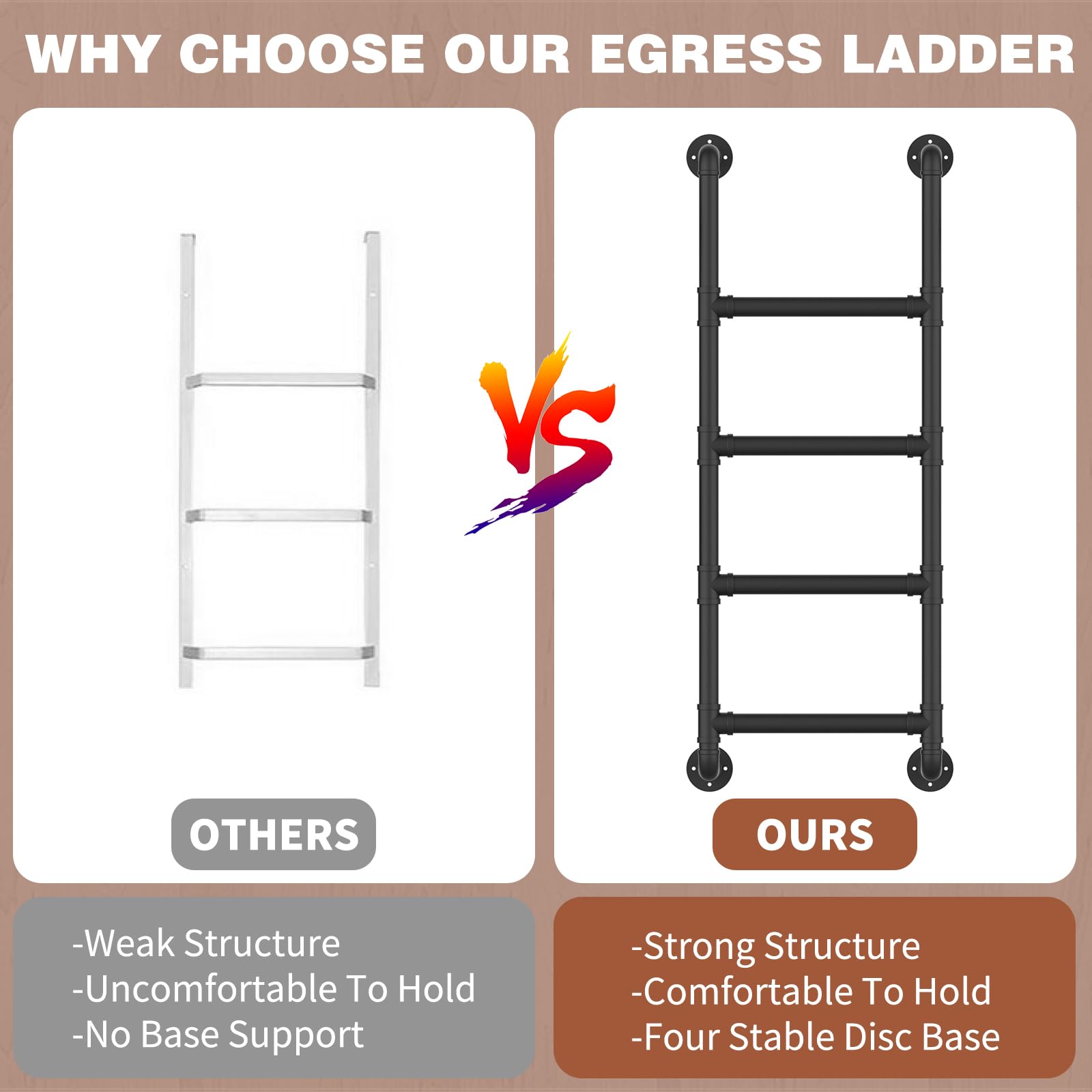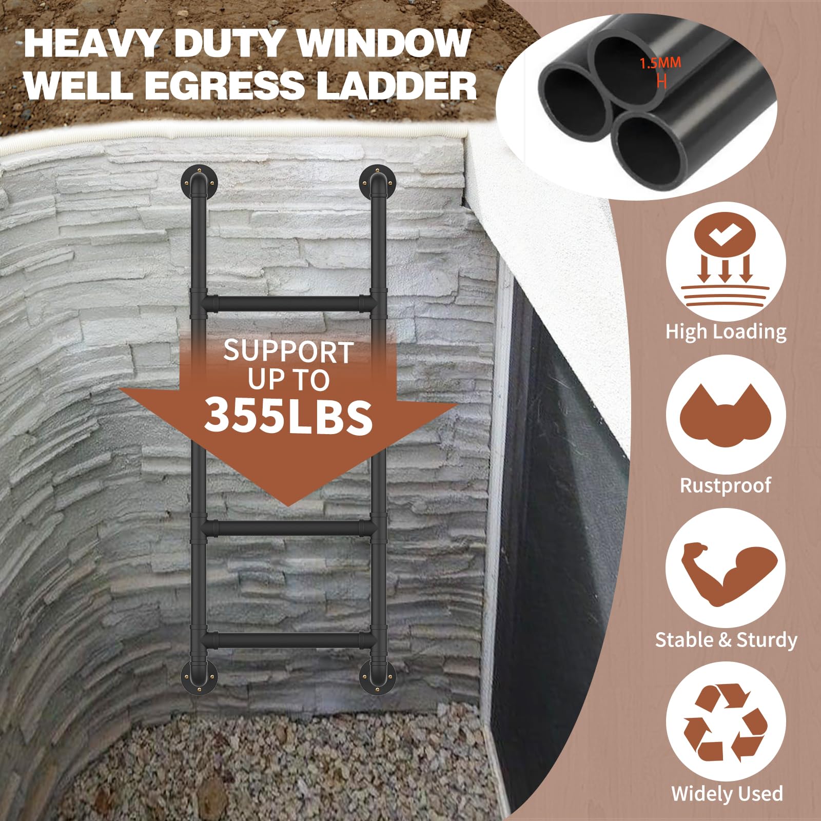 - [Reliable Wall Mounted Ladder]: Made from high duty iron material, ф32mm tube & 4mm thickness disc base make our window well ladder is built to withstand max 355LBs loading capacity and protect your safety during emergency moments.