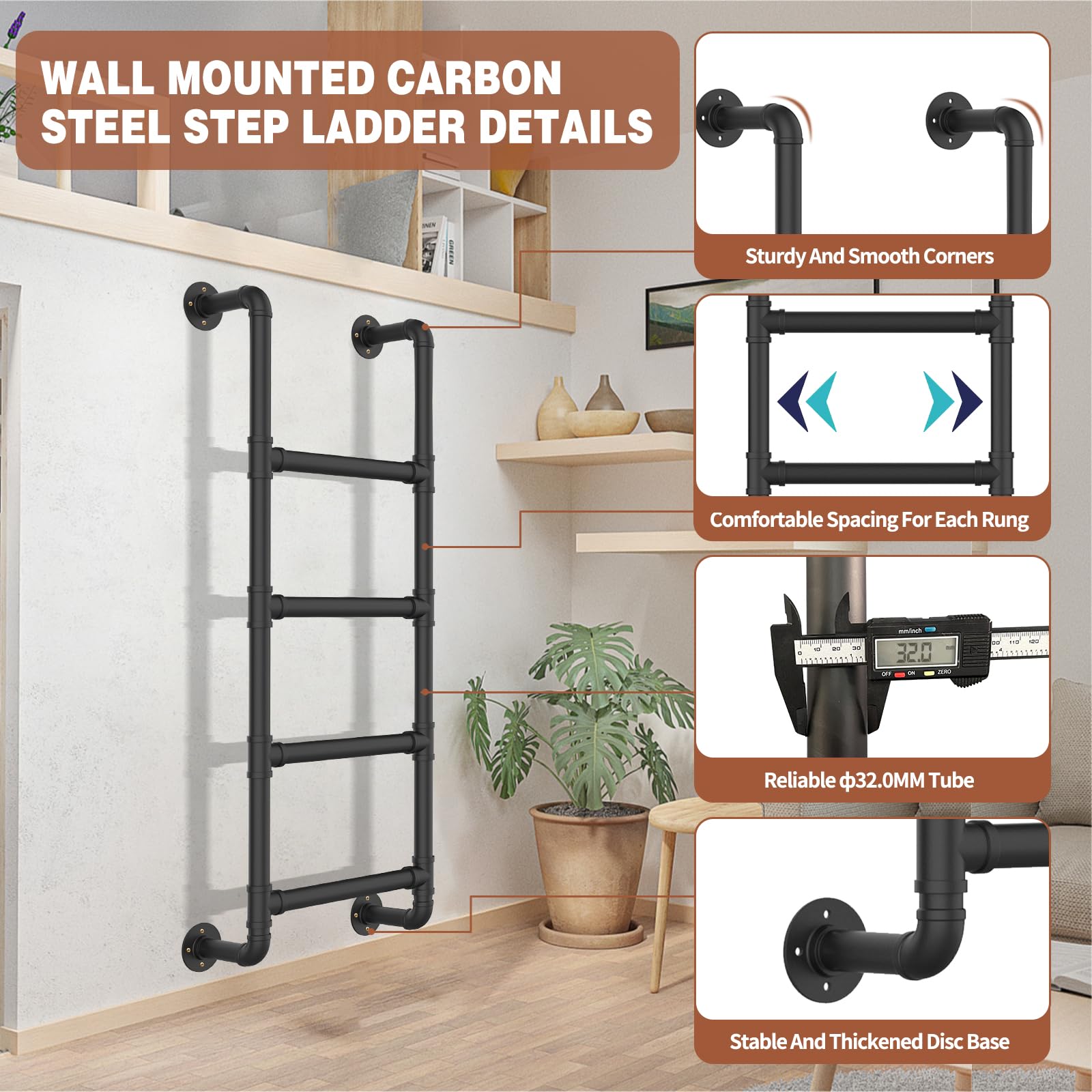 - [Widely Used Climbing Ladder]: Our ladder is suitable for both indoor and outdoor use, such as bunk beds, attics, window wells, and walls. The black pipe style is simple and neutral for any decor, and the wall-mounted design saves floor space.