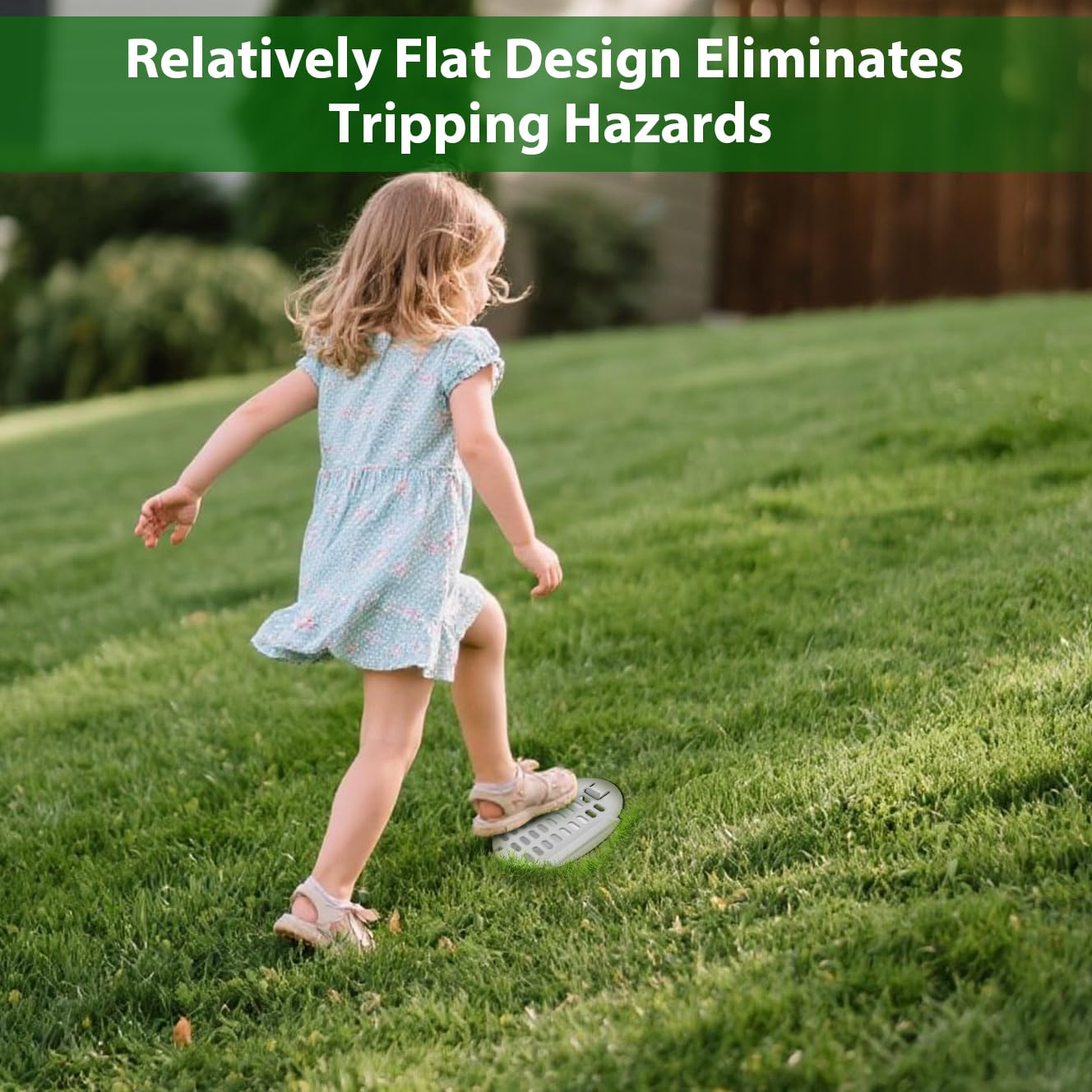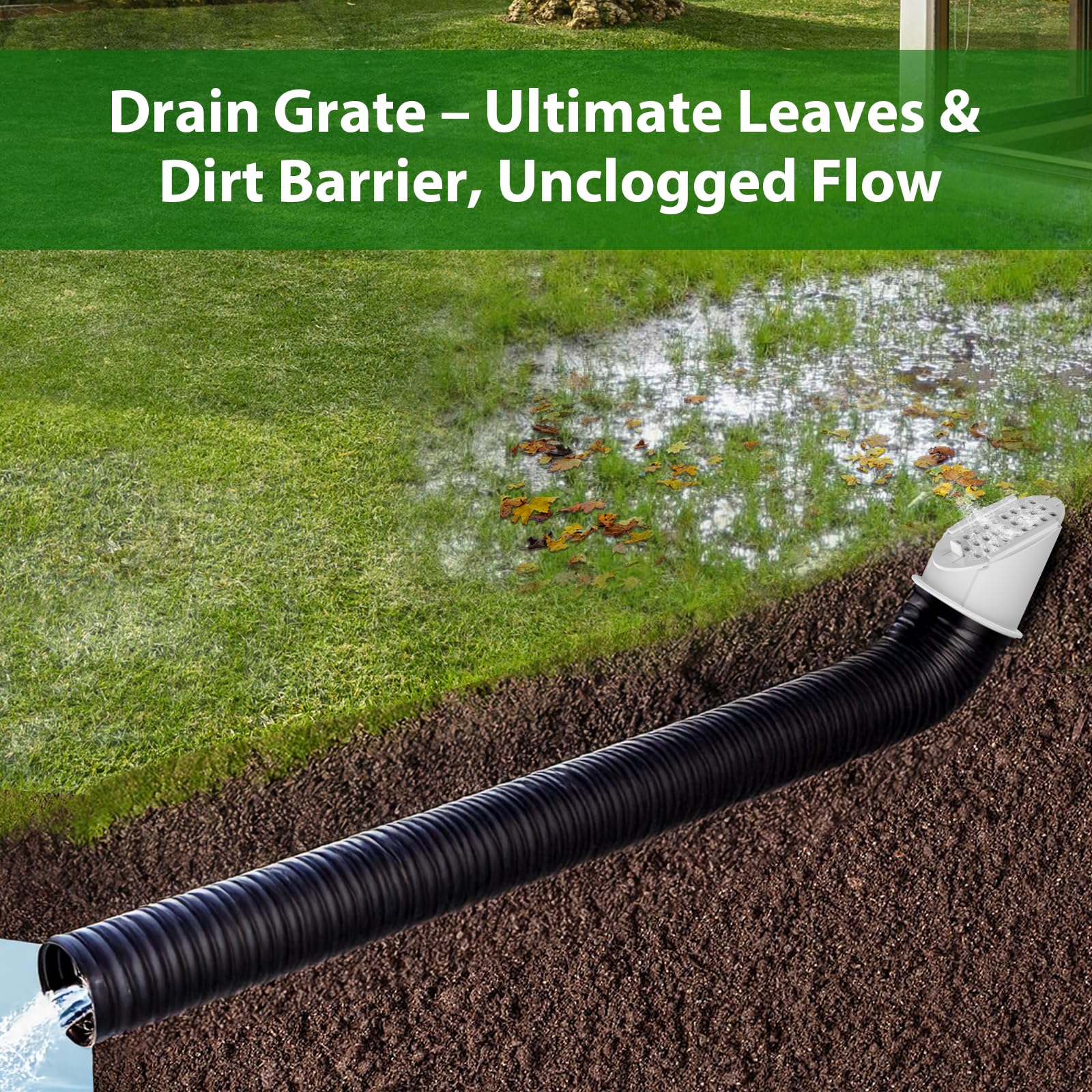 - [Solve Outdoor Drainage Issues]: Low-profile drain emitter blends with sloped landscapes, supports lawn tractors, and matches grass color. Angled drainage grate optimizes flow in uneven grades. Ideal for downspout diverters