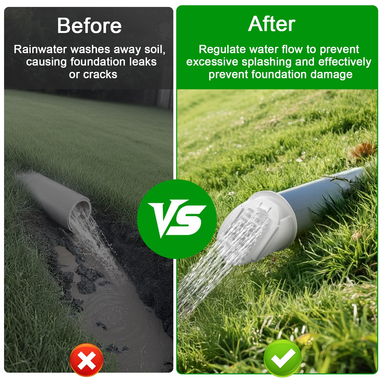 - [Protect Home Foundation & Landscape]: Direct rainwater away from foundations to prevent soil erosion, leaks, or cracks. Perfect as an inlet/outlet for french drains, trench drains, detention ponds, or sump pump outlets. Stops water backflow into lawns, patios, or basements