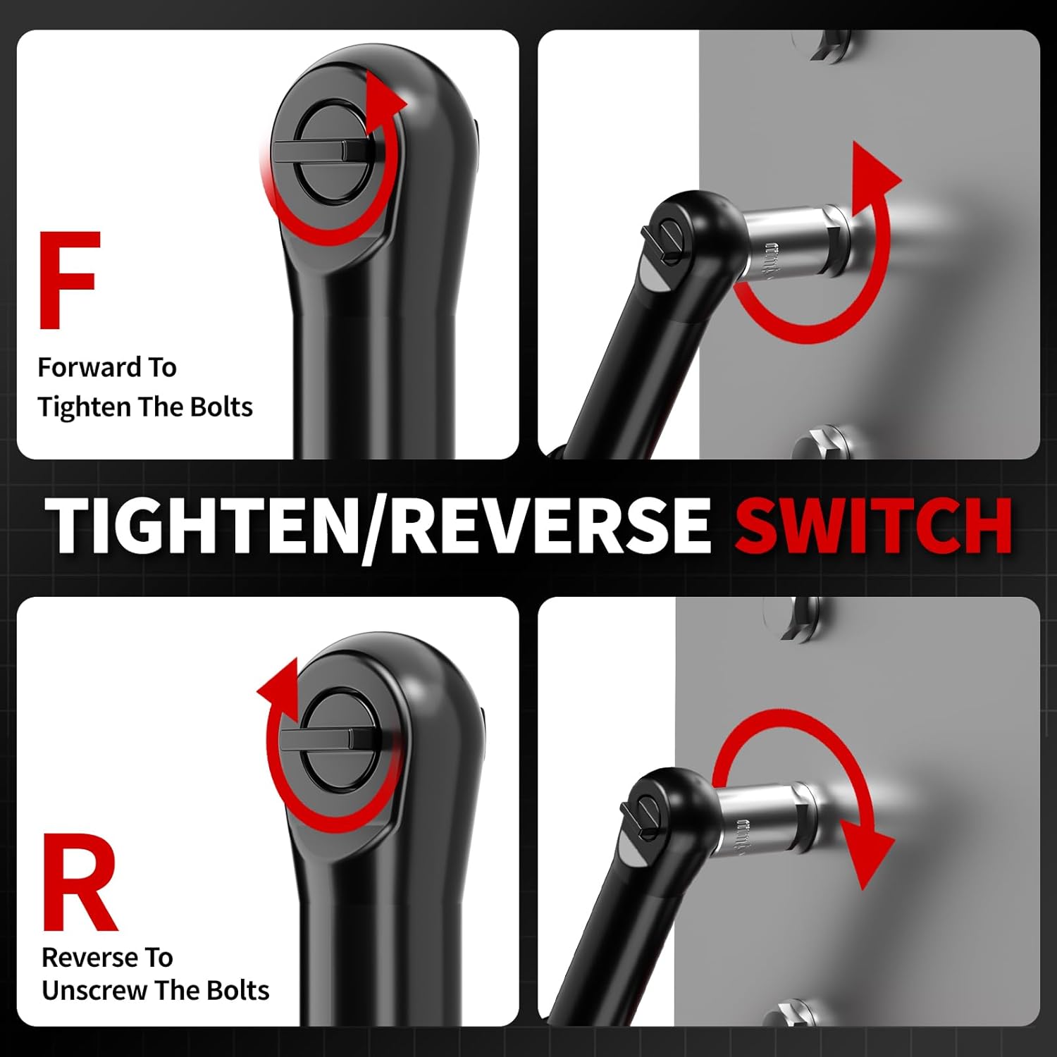 - [Complete Ratchet Wrenches Tool Set]: FULLYEA cordless slim ratchet set comes with 2 x2.0Ah power batteries, 1 x fast charger, 7 x sockets, 1 x 1/4" adaptor, 1 x 3" extension bars. FULLYEA has provided you with an all-you-need ratchet wrenches set
