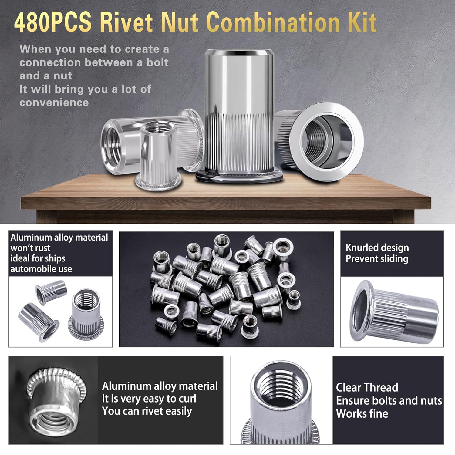 - 【Wide Application】: Rivet nuts are commonly used fastener products in our tool room. When you need it, it will bring you a lot of convenience. Embedded rivet nuts provide a firm connection for screws and bolts in your home decoration and industrial applications. They are widely used in home appliances, car repairs, furniture, metal doors and windows, home decoration, sheet metal assembly and industrial applications.