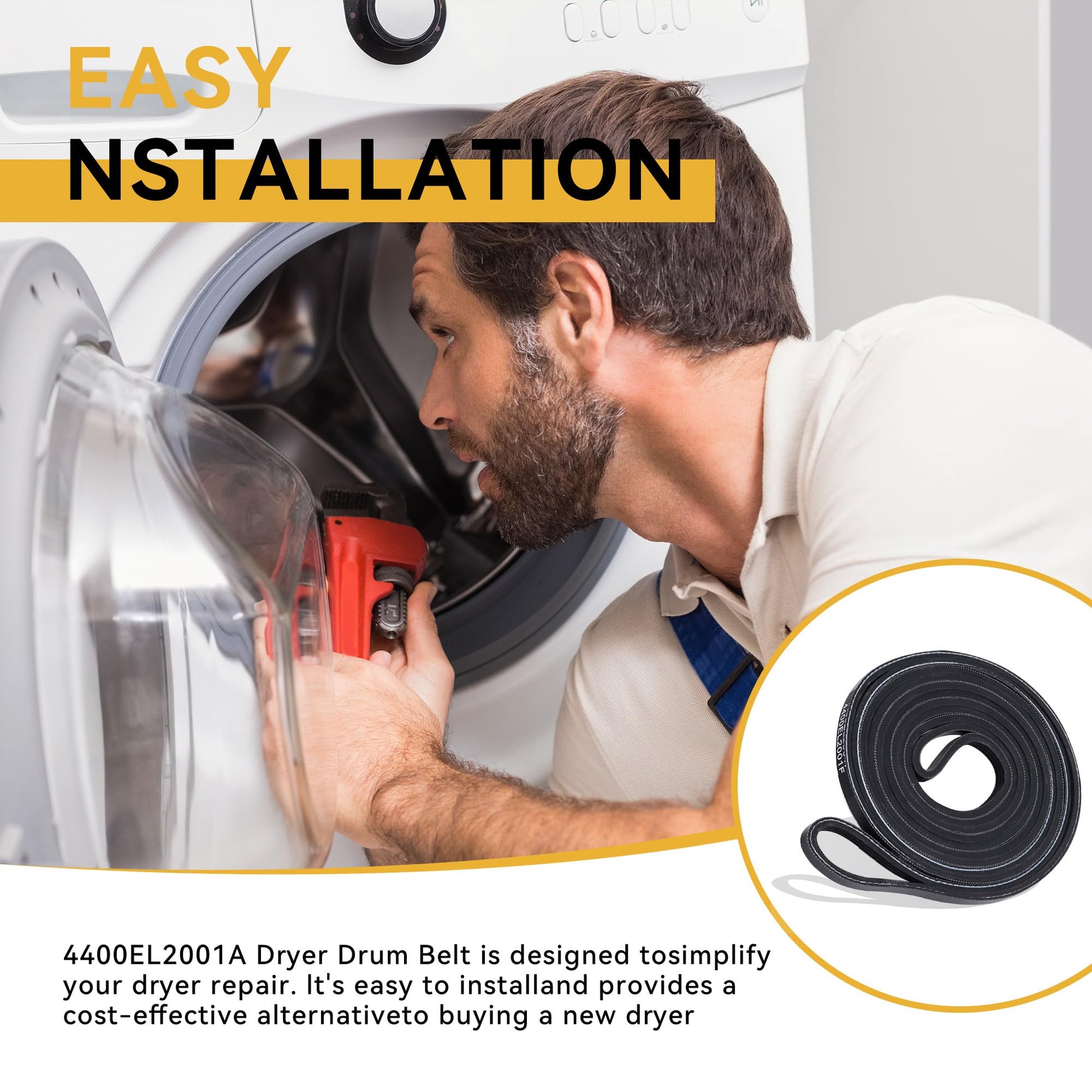 - perfect solution: The 4400EL2001F Dryer Belt Replacement solves problems such as noisy dryers or drums that do not rotate, ensuring that the drums rotate smoothly and restoring the efficient operation of the dryer.