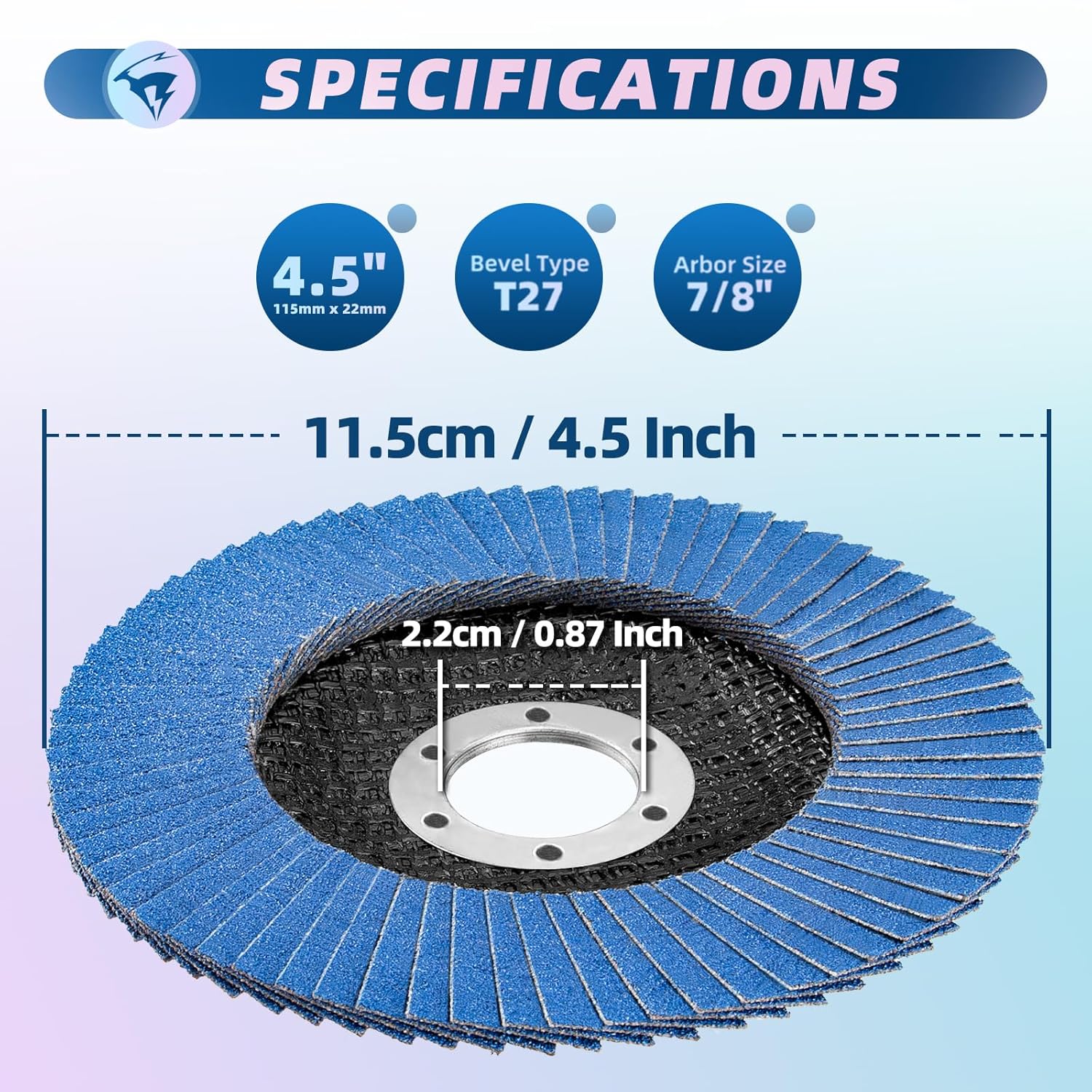 - 【High-Quality Performance】Our 4.5" x 7/8'' flap discs meet industrial standards and are ideal for use with 4.5” angle grinders. These Type 27 discs are versatile and perfect for aggressive stock removal and surface blending.