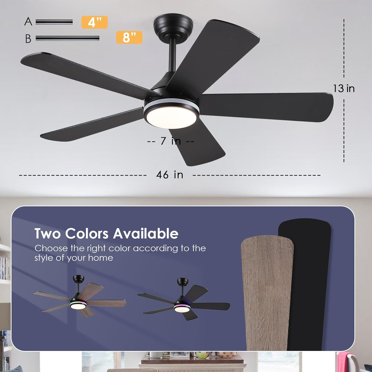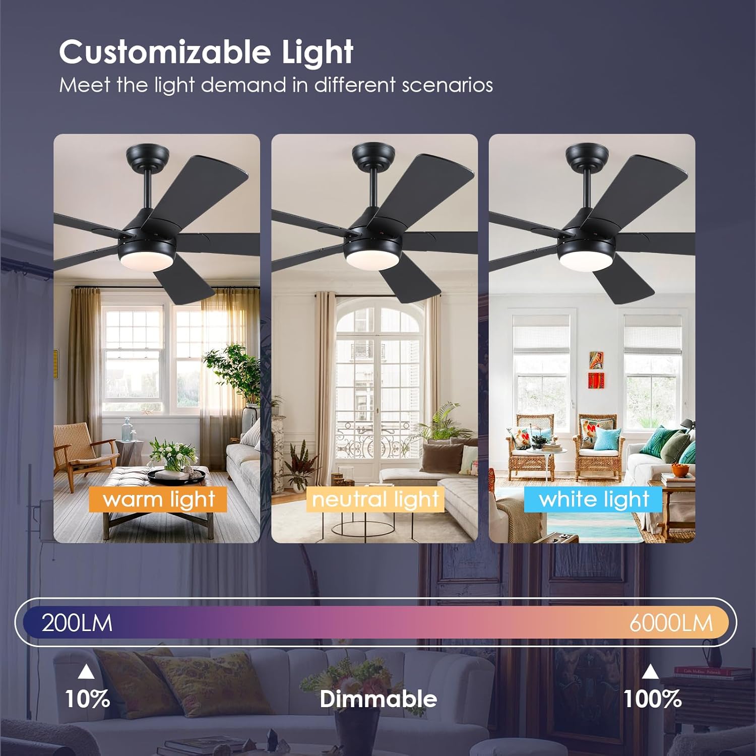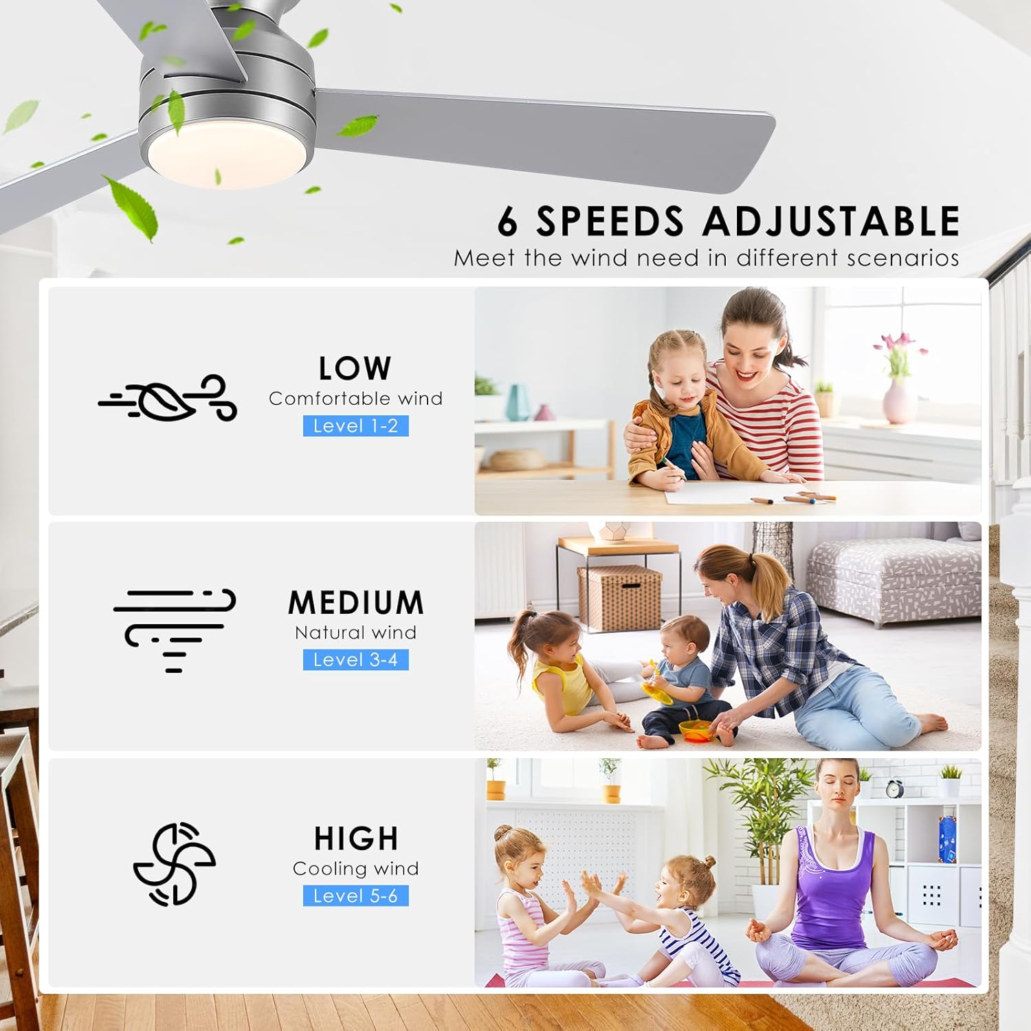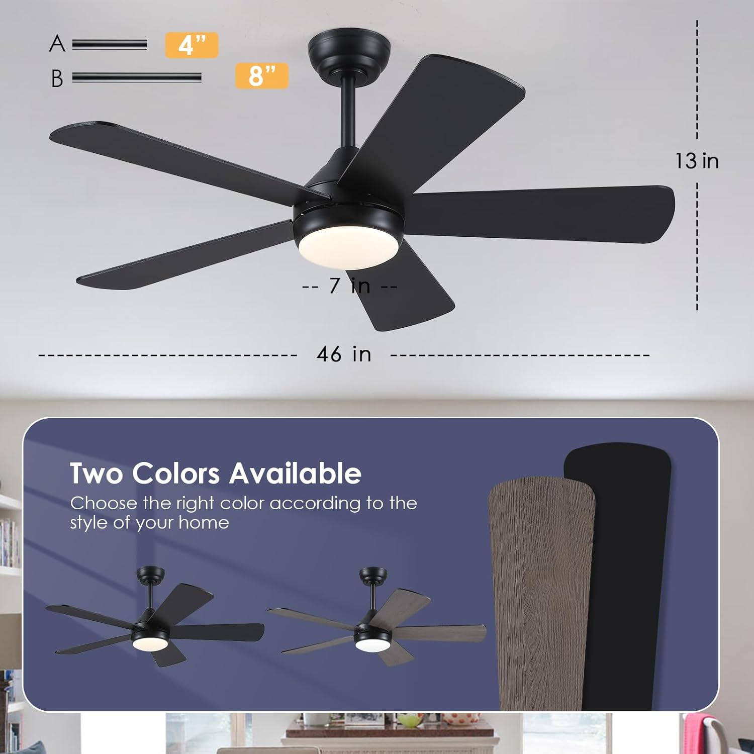 - 【Reversible Copper Motor】: Reversible motors help you cool in summer and promote air circulation in winter. This 46 inch 6 blade ceiling fan offers adjustable lighting and a quiet DC motor for a peaceful and comfortable environment. Suitable for the bedroom, living room, home office, kitchen, or dining area, it's a perfect solution for any family home