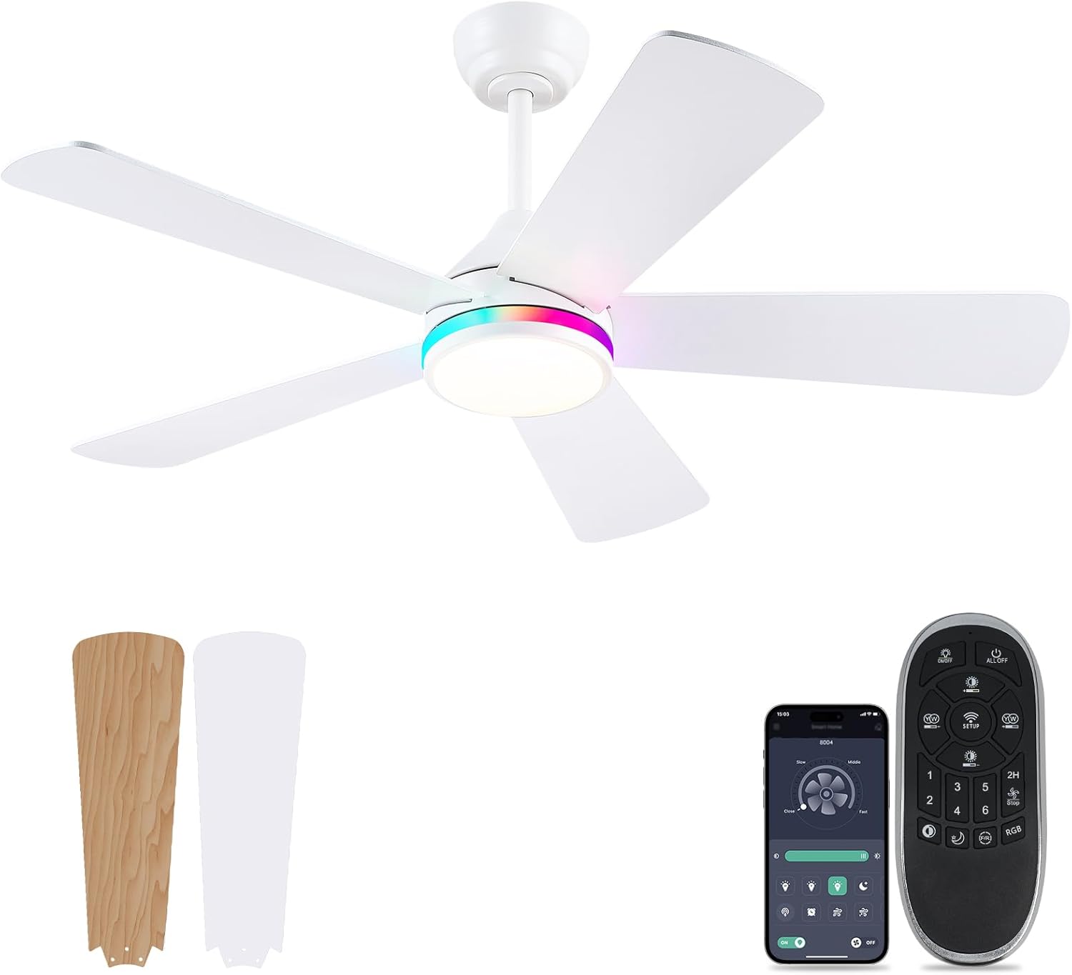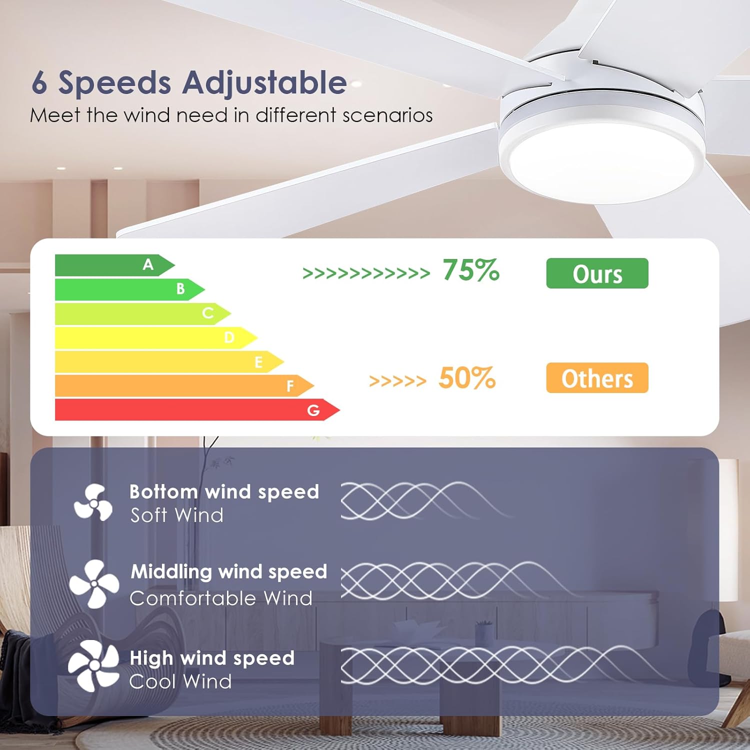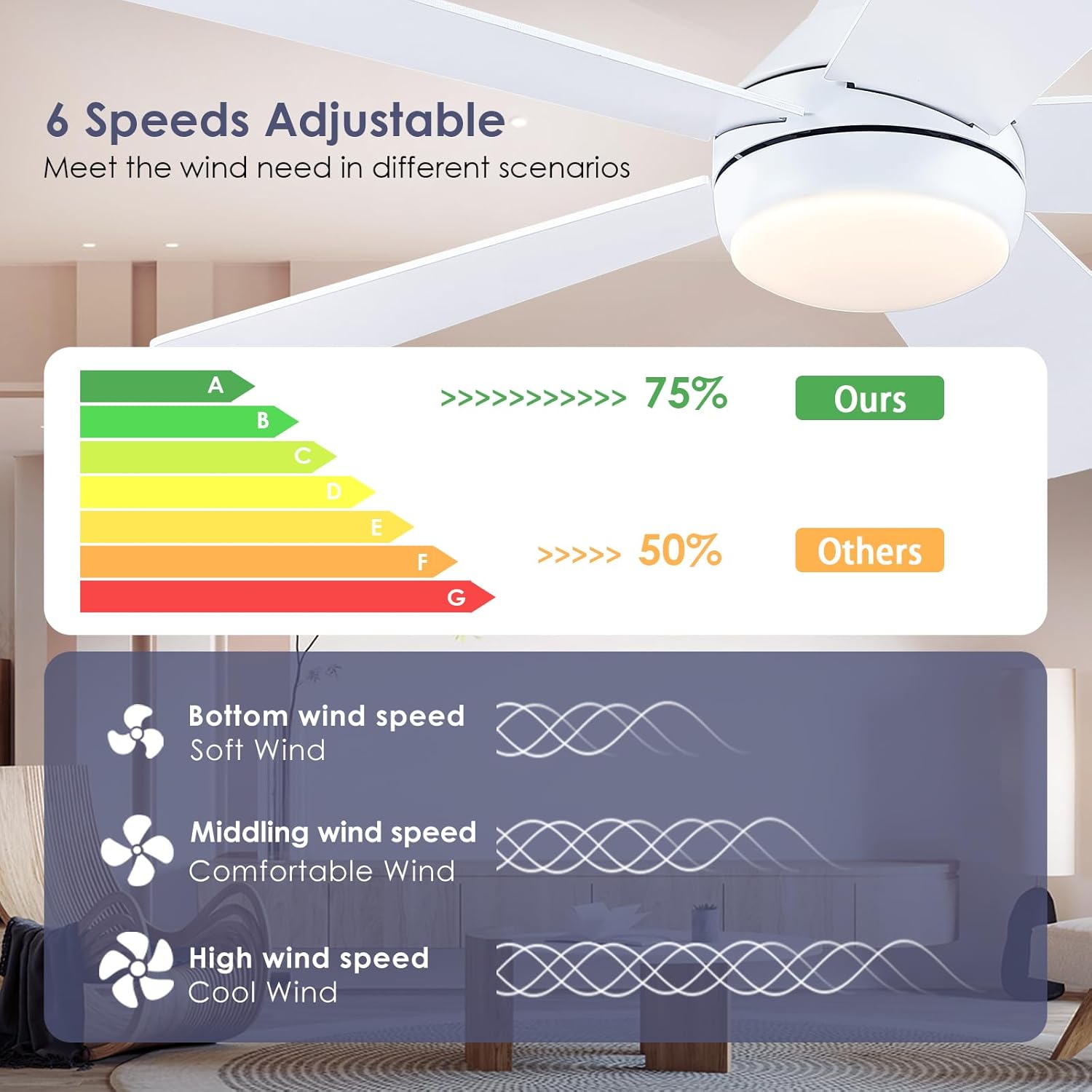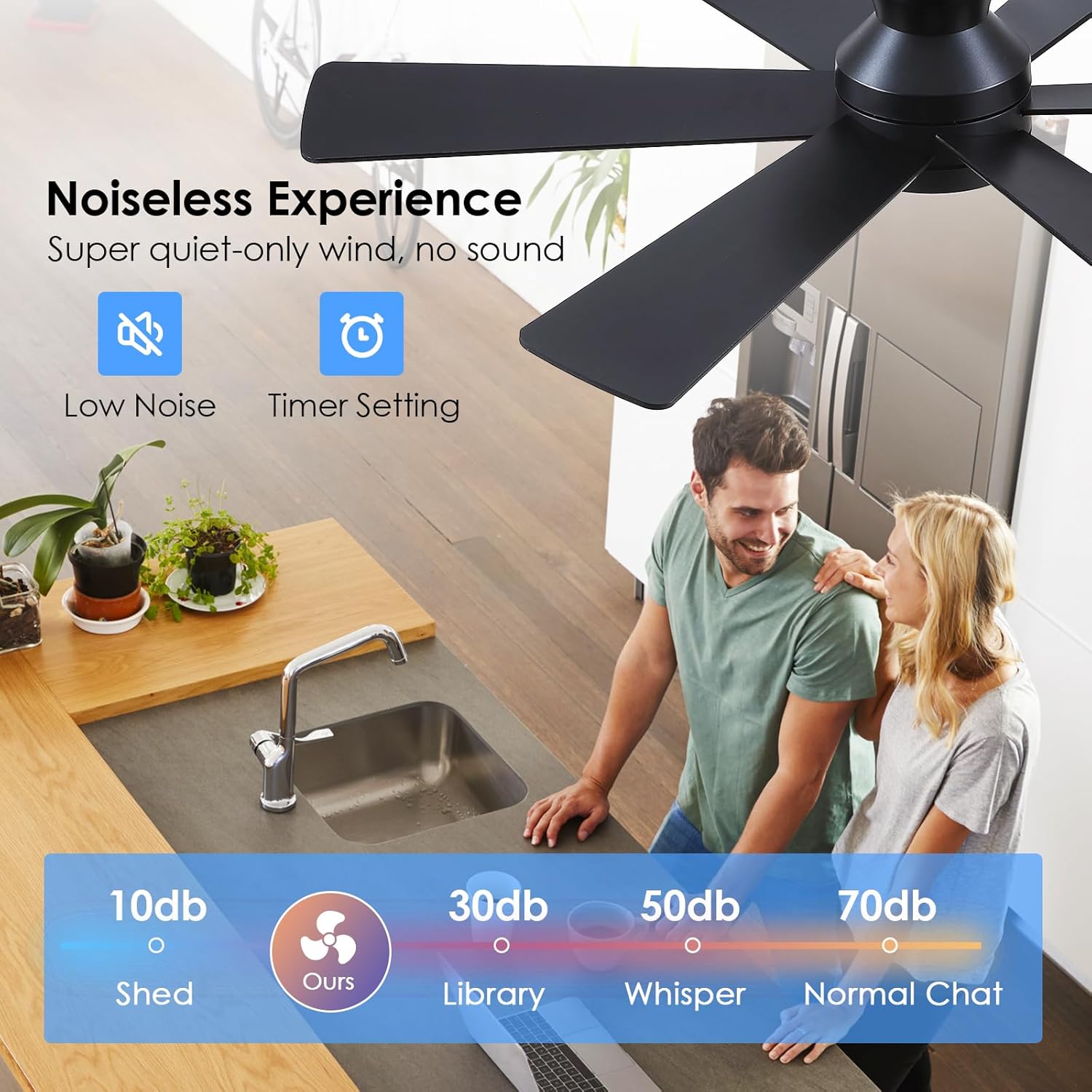 - 【Reversible Copper Motor】: Reversible motors help you cool in summer and promote air circulation in winter. This 46 inch 6 blade ceiling fan offers adjustable lighting and a quiet DC motor for a peaceful and comfortable environment. Suitable for the bedroom, living room, home office, kitchen, or dining area, it's a perfect solution for any family home
