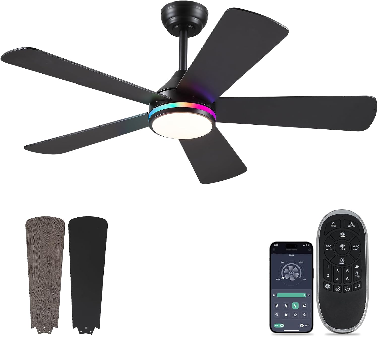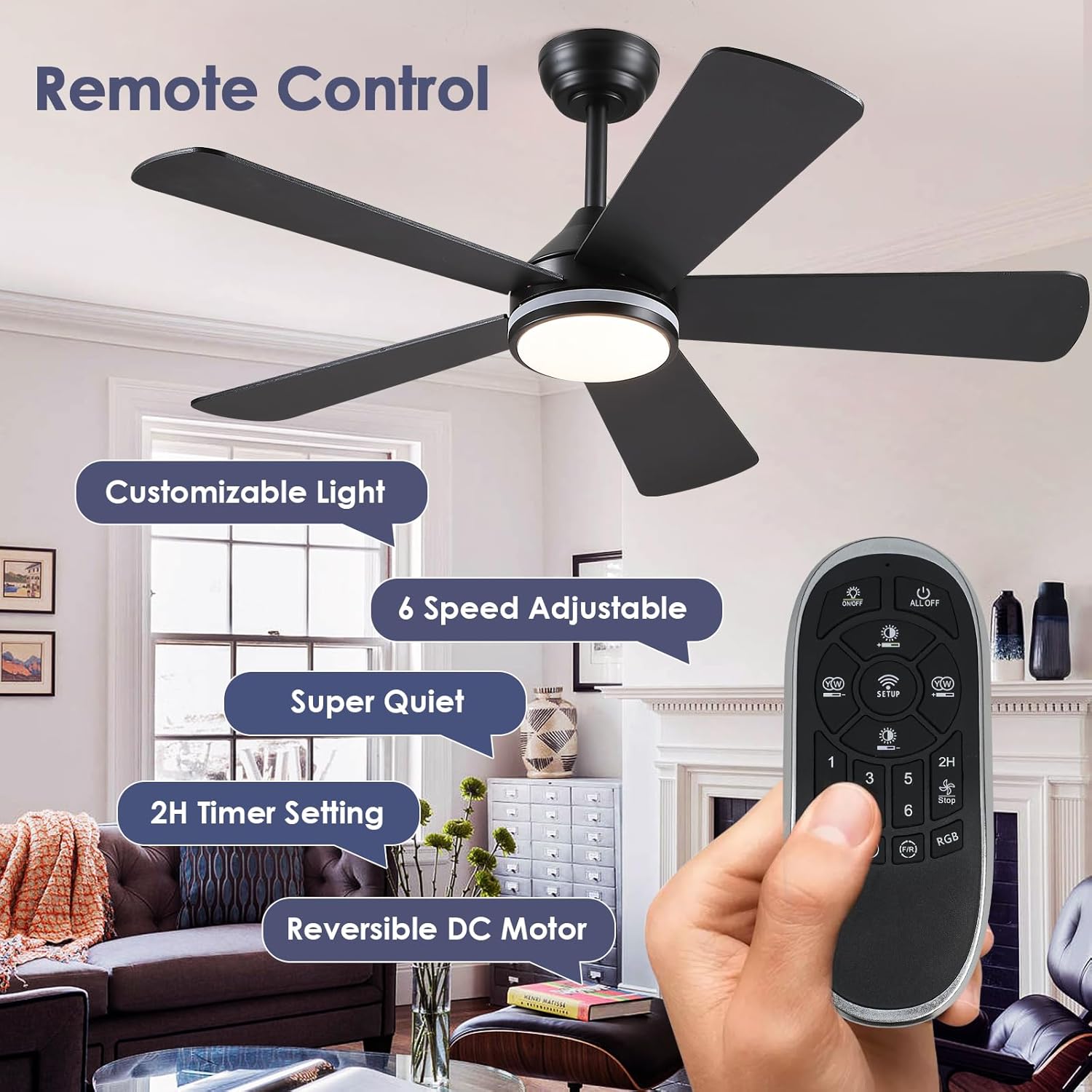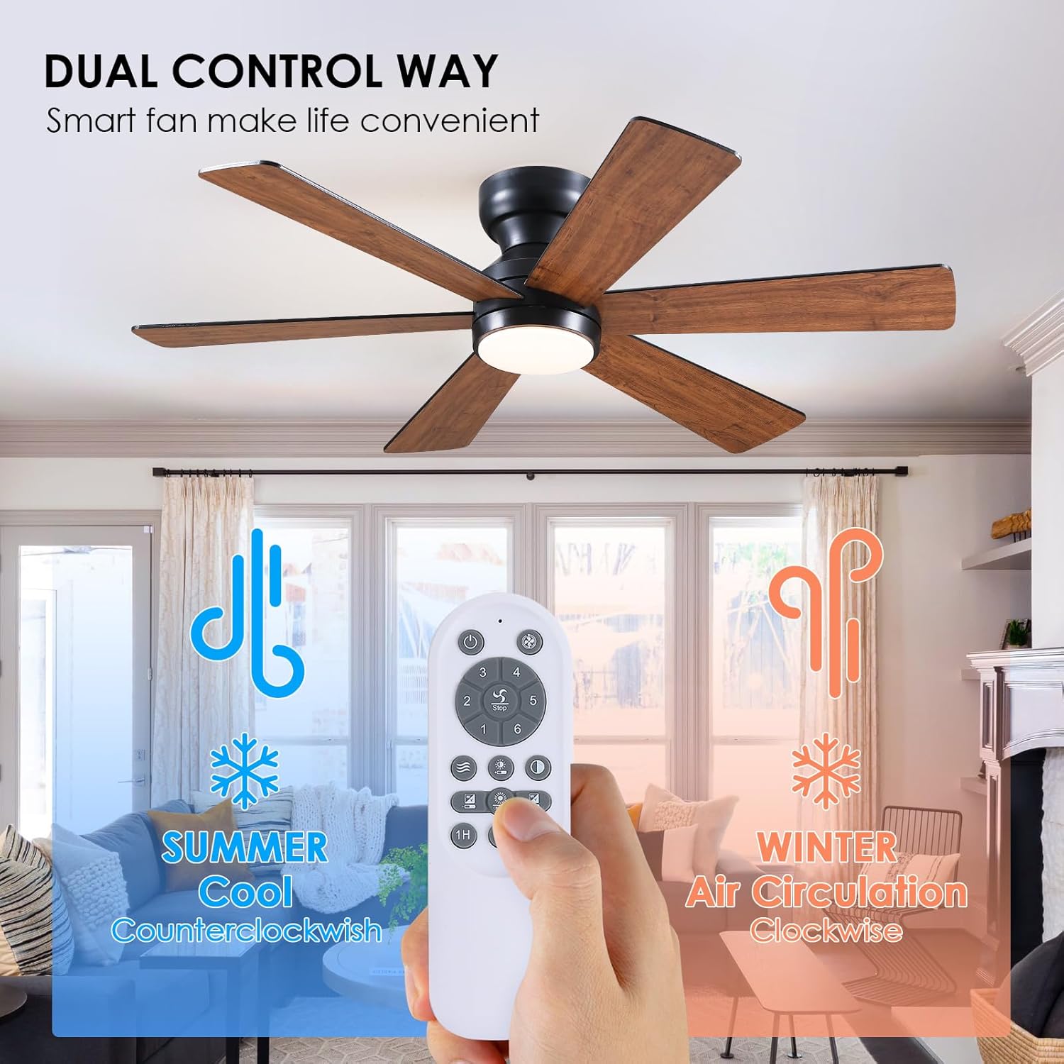 - 【Ceiling Fans with Remote】: Asyko modern ceiling fan, with double-sided fan blade design and a black ABS body, All operations can be controlled by the remote controller, adjust the fan speed with 6 levels, select light color temperature, and supports timing (1/2 hour). The fan and light can be turned on separately. (Tips: After fixed, the remote control can be used as a wall switch)