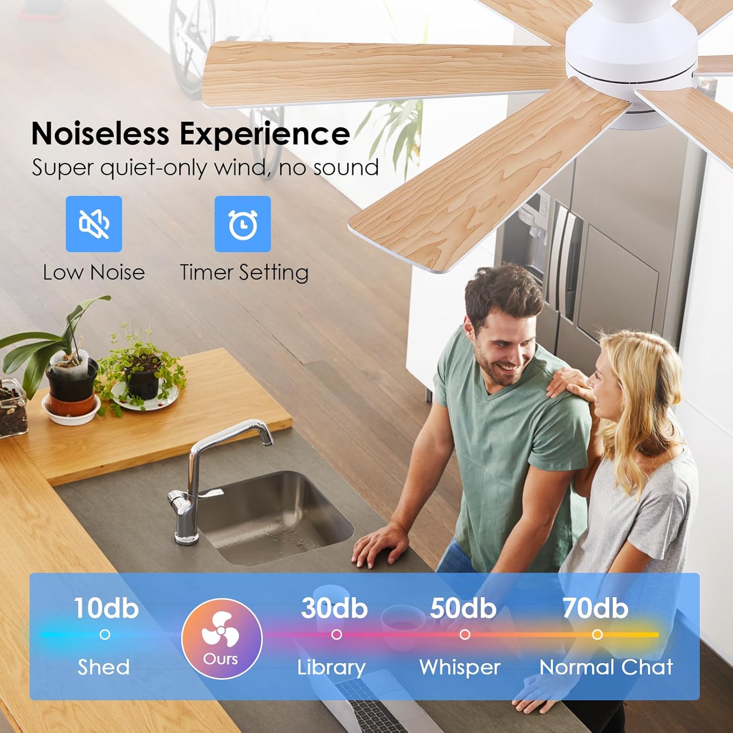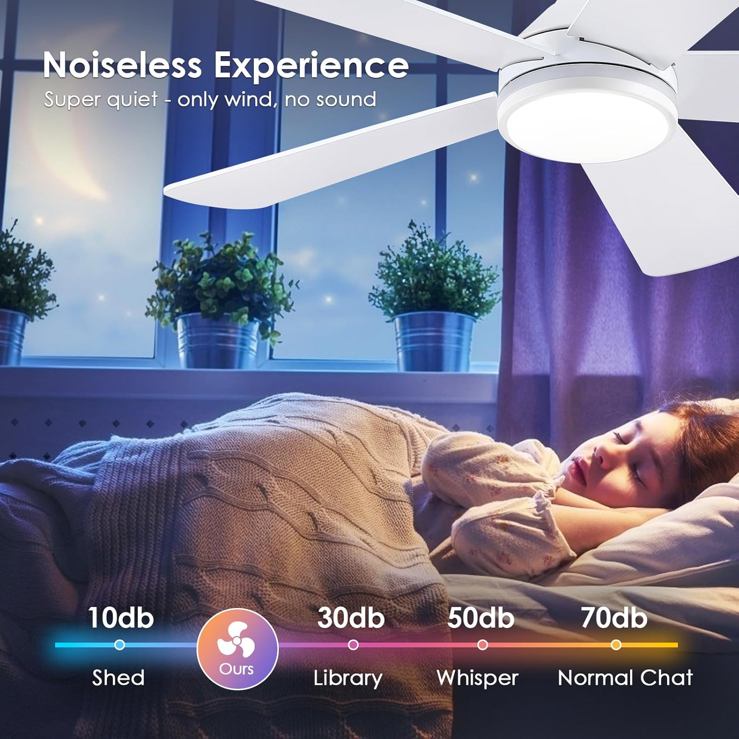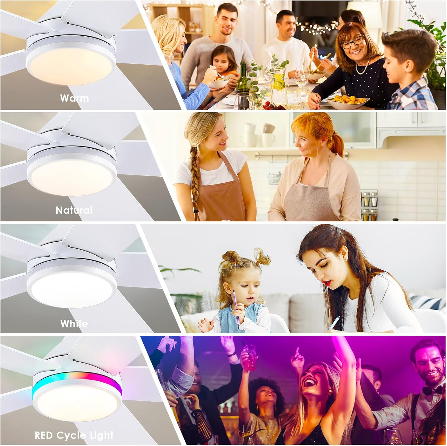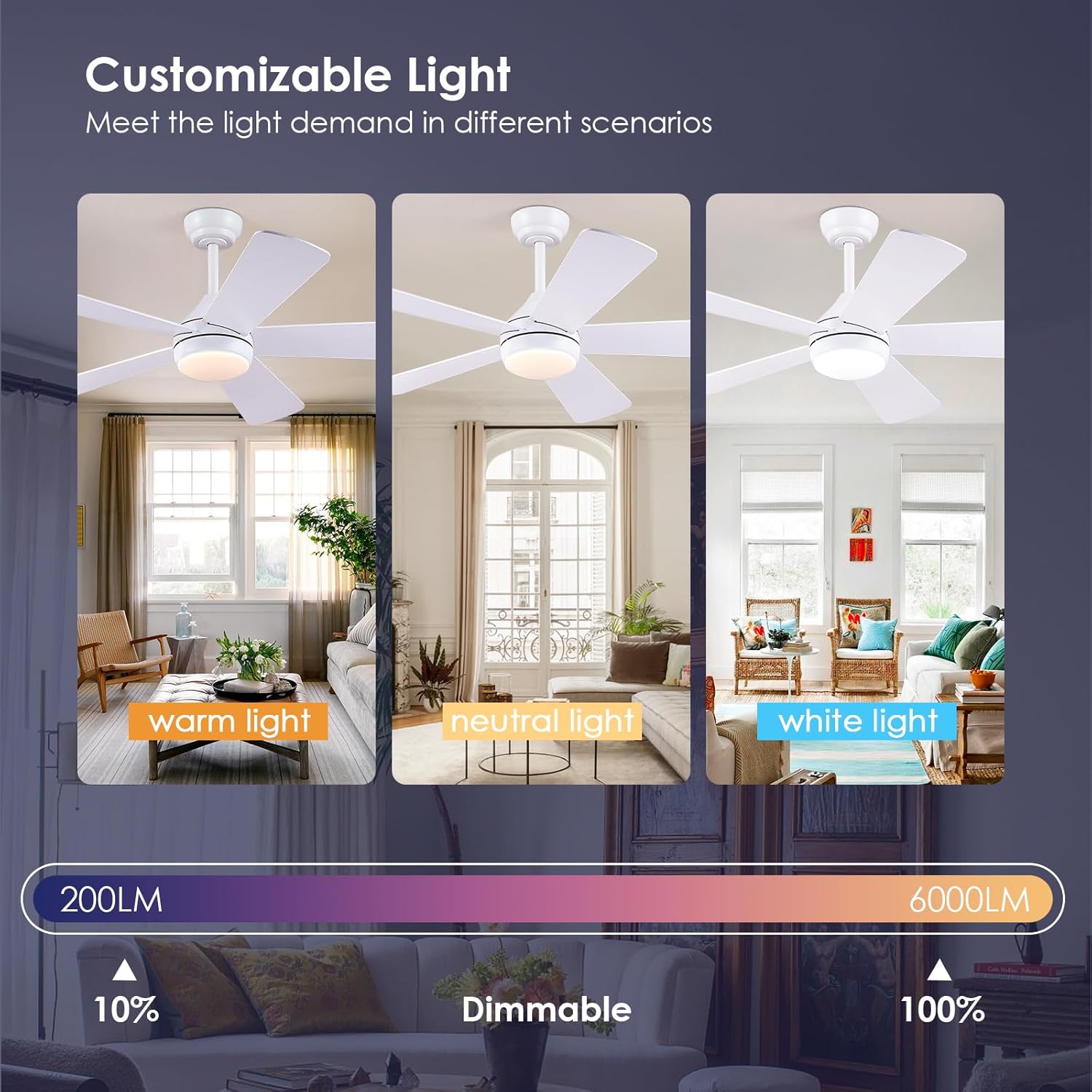 - 【Flush Mount Ceiling Fan】: Our smart ceiling fans with lights are dimmable (10%-100%) for allowing you to find the ideal light for every occasion. At the same time, you can also select from 3 color temperature: 3000K-warm white, 4000K-nature white, 6000K- cold white.Whether creating a cozy atmosphere or providing clear illumination, it meets all your needs