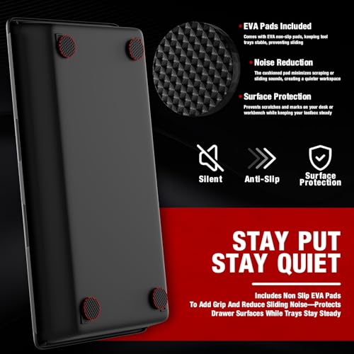 - ¡¼INCLUDES ANTI-SLIP UPGRADE for STABILITY¡½? Comes with EVA non-slip pads, customers can DIY stick them at the tool box trays bottom if needed, keeping tool box drawer organizer bins stable, preventing sliding, protecting tool drawer surfaces and improving tool storage organization.