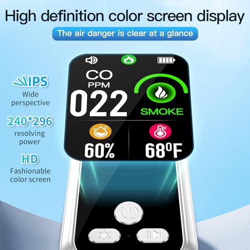 - ¡¼ Equiped 2.1¡¯¡¯ HD Screen¡½ All the data real time show on the HD screen, we can read the data faster from the big icons like: CO ppm, Smoke indicating bar, humidity, temperature, CO indicator icon, and alarm status.