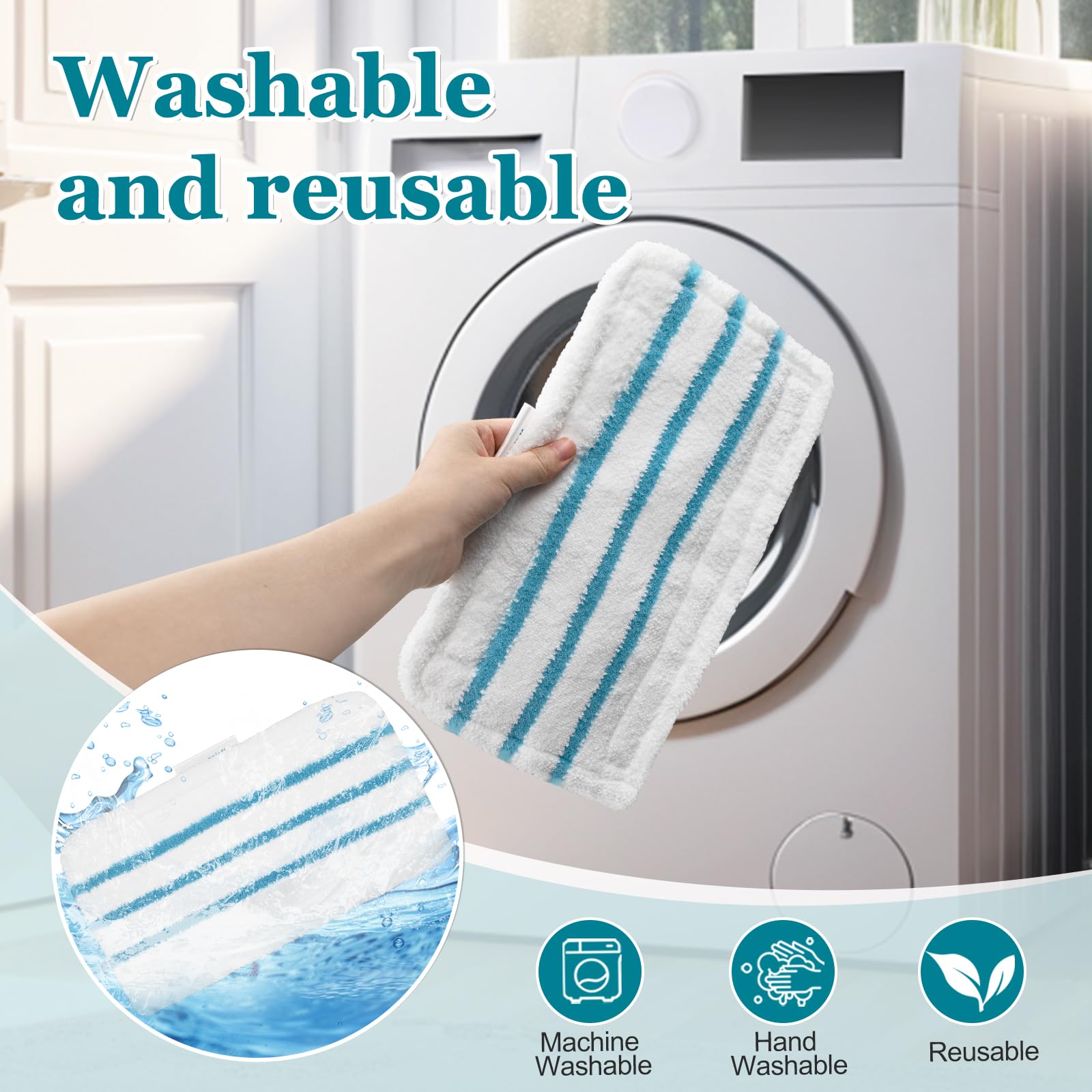 - Reusable & Machine Washable: These eco-friendly mop pads are repeated use. Simply wash them in the machine for easy cleaning and long-lasting performance, making them a cost-effective and sustainable choice for your home.