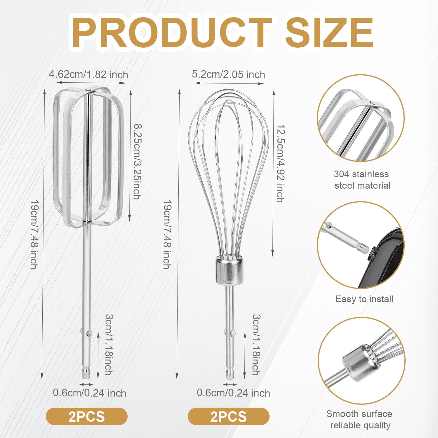 - Package Content: You will get 4 pieces of hand mixer attachments in 2 styles, including four-blade hand mixer attachments, 12-wire hand mixer attachments, 2 pieces of each styles. Sufficient quantity and styles will meet your kitchen use needs.