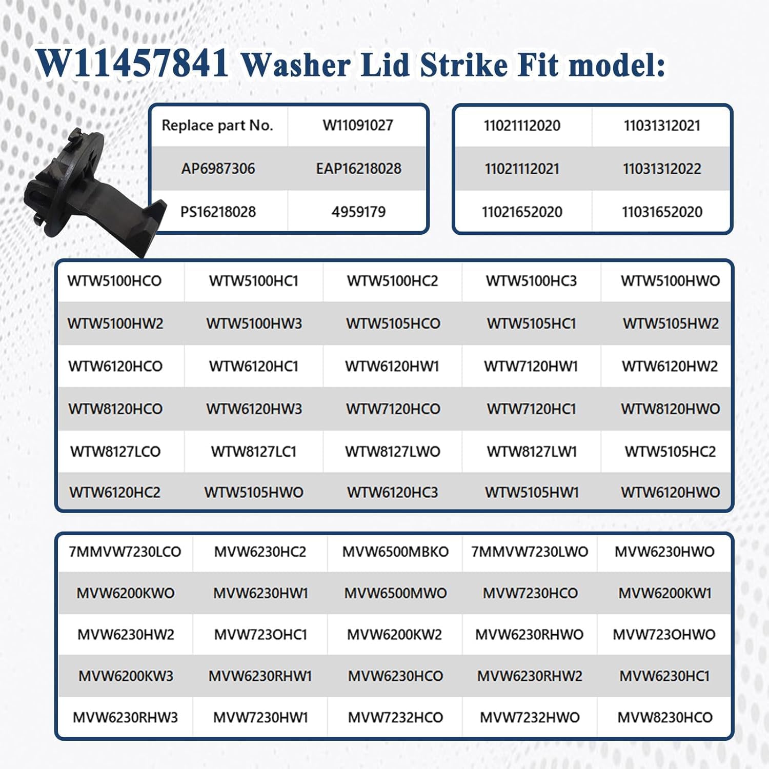 - [Introduction] W11457841 washer lid strike, replaces for W11091027, 4959179, AP6987306, PS16218028, EAP16218028, PD00061788.
