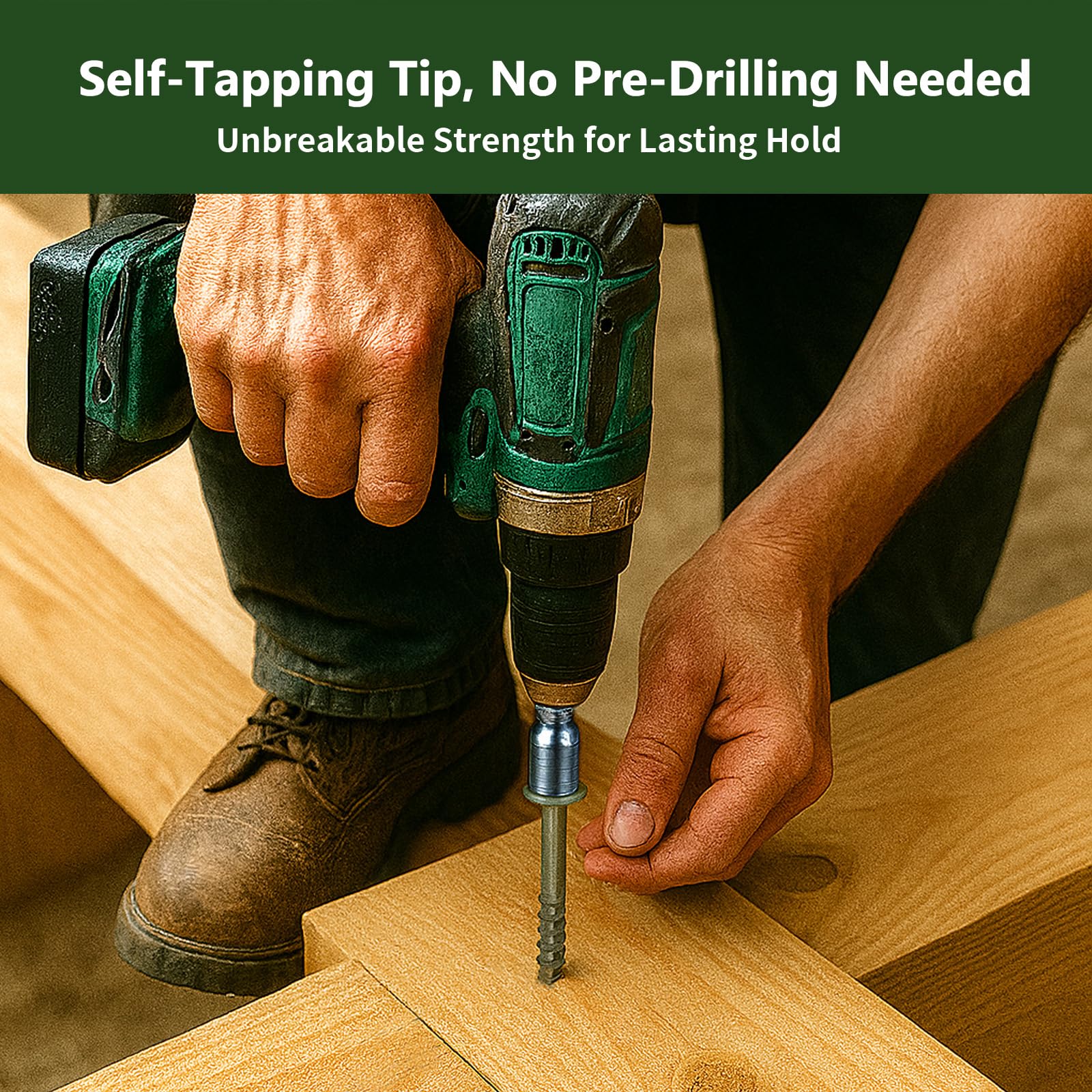 - Self-Tapping Tip, No Pre-Drilling Needed Save time and effort – the self-tapping pointed tip drills in smoothly without splitting wood, even hardwoods.