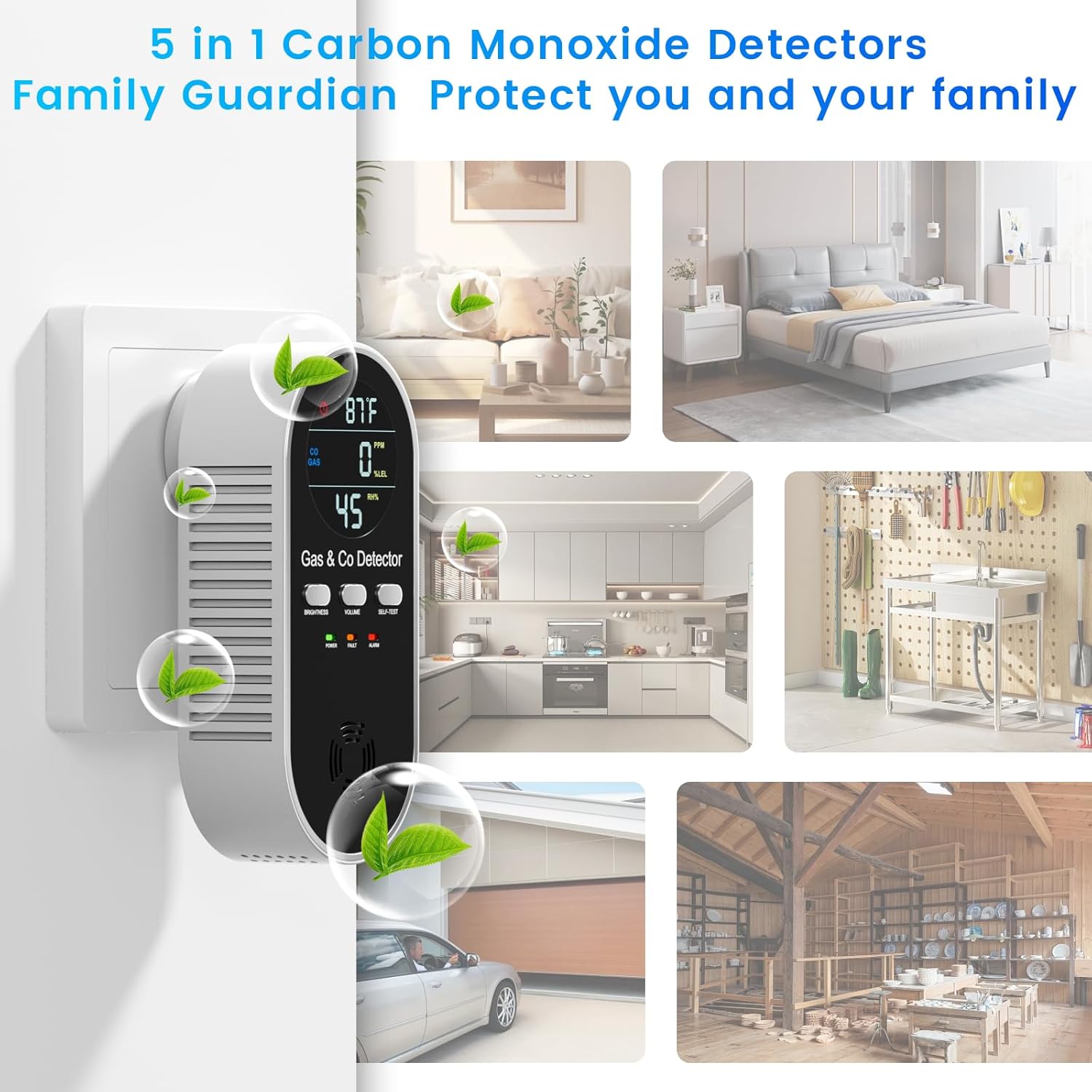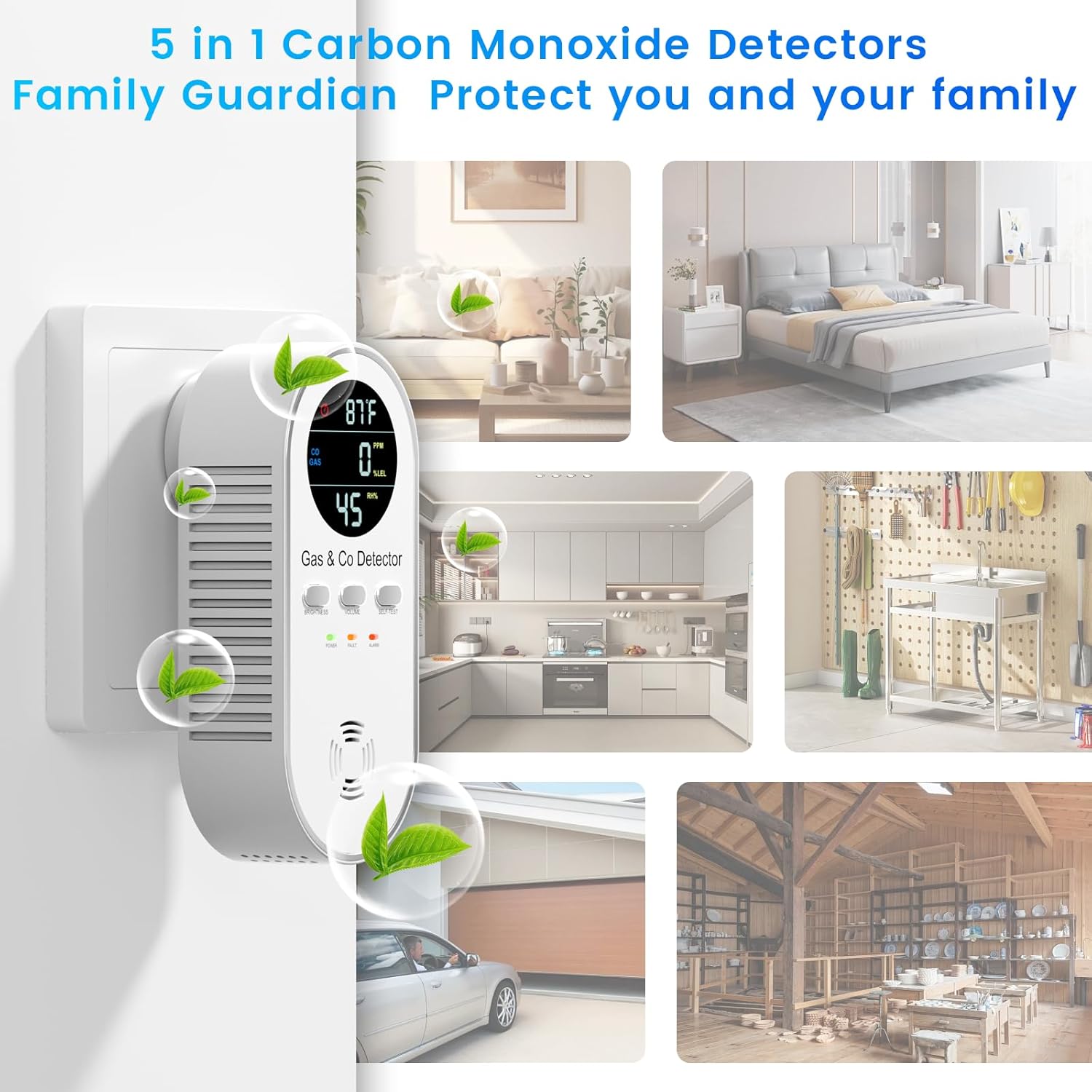 - 【5-In-1 detection 】Detects Carbon Monoxide, Flammable Gas, Temperature, and Humidity; Adjustable Light/Sound.