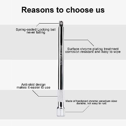 - Easy to Operate: The knurled handle design of the socket extension set is convenient for you to manually turn loose fasteners, and it is ergonomically designed for comfortable operation and can withstand greater torque.