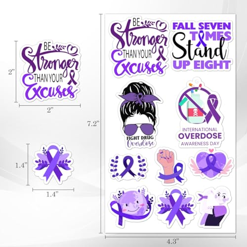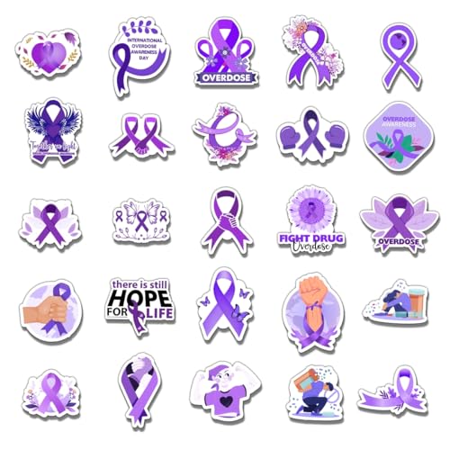 50 Pack Pcs Overdose Awareness Ribbon Stickers for Water Bottles Waterproof Vinyl Laptop Motivational Inspirational Quotes Sticker Packs Bulk Adults Teens Aesthetic Small Decals