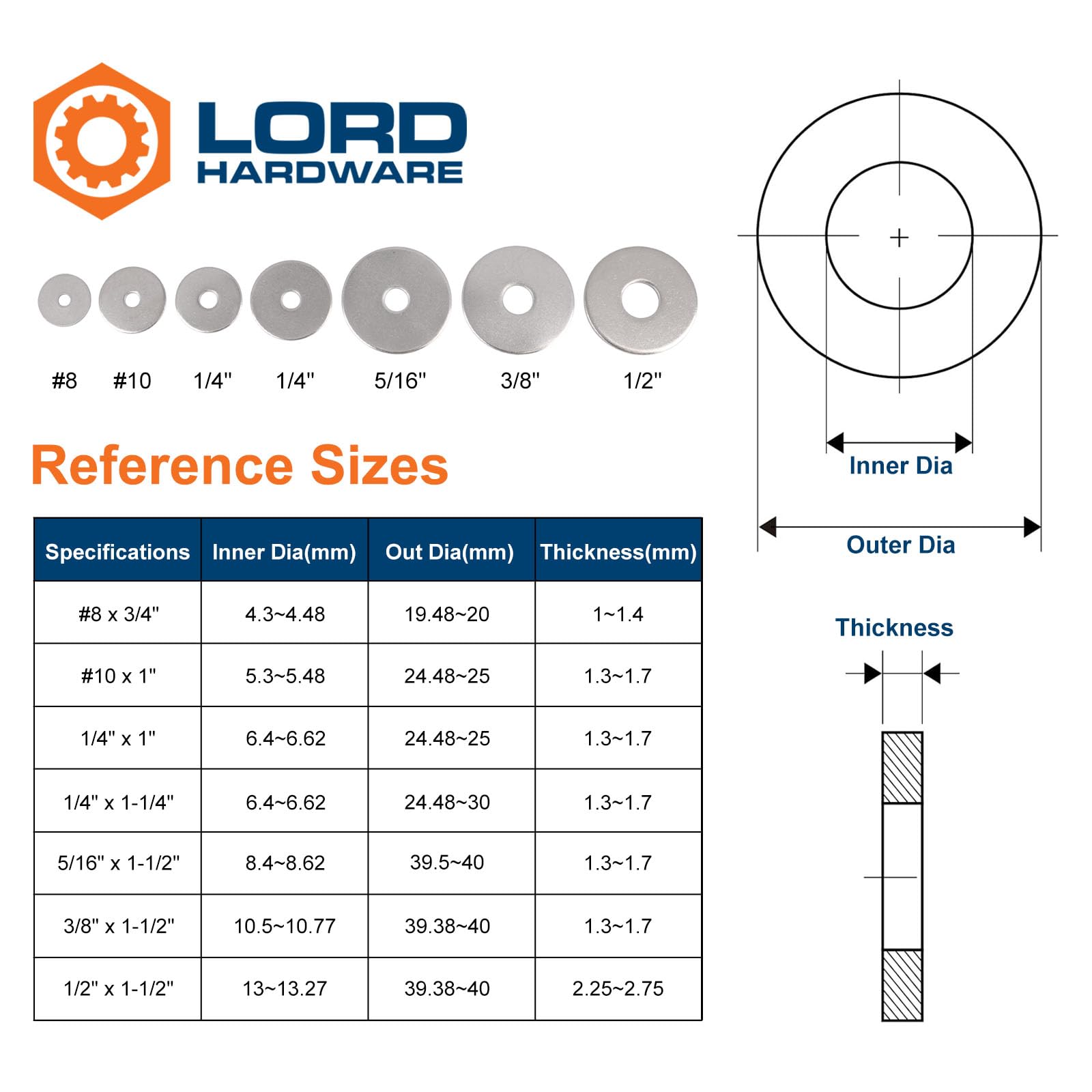 Details: 50PCS 1/4" x 1-1/4" Fender Washers, 18-8(304) Stainless Steel Flat Fender Washer, 1/4" ID x 1-1/4" OD, 0.06'' Thick