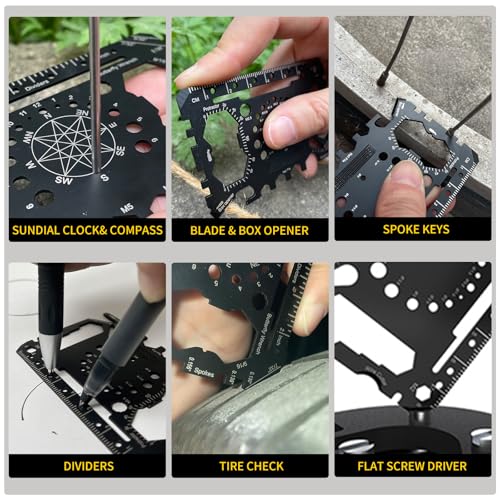 - 52 IN 1 Tool: Groninog multi tool card providing instant access to 52 different tools, including Hex Wrenches, Compass, Box Opener , Wire Cutter, Cable Bender, Nail File, Tire Tread Checker, Eyeglass Screwdrivers, Flat Screwdriver, Drill Gauges Inch, Ruler, Protractor etc.