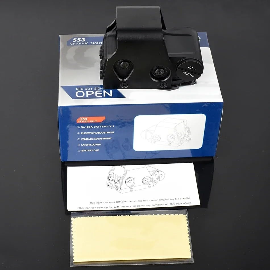 Details: Name :553 sight Exit-pupil:8MM F.O.V.:146.3-34.2ft100yds Eye relief :unlimited optics coating :multi coated Adjustment : Windage and Elevation 0.5MOA Maximum Output Power:>OMW,<1mw>