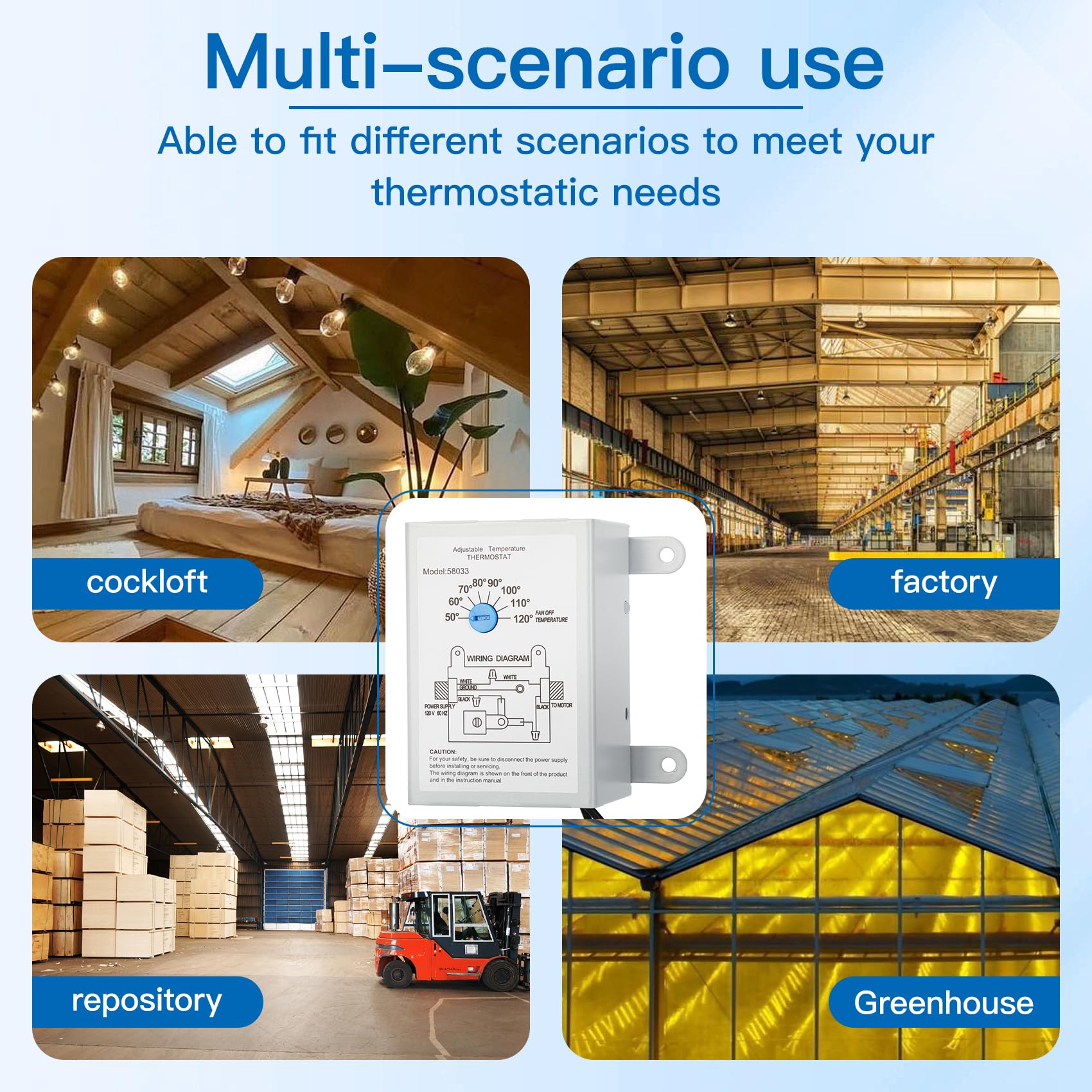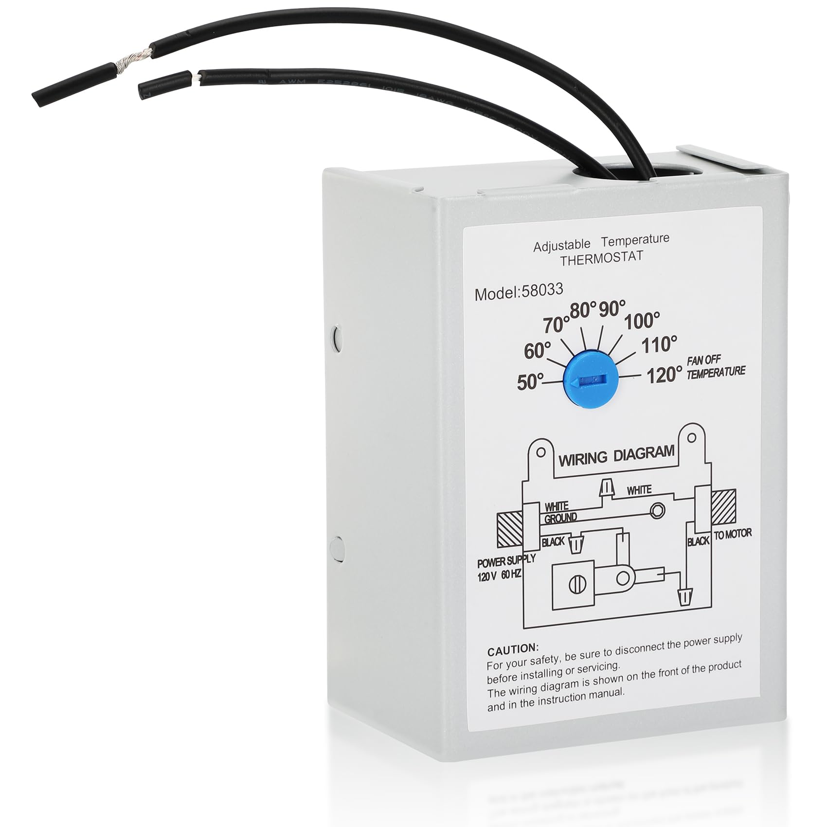 58033 Single Speed Adjustable Thermostat for Lomanco Lomancool 2000/1800 Series and F0510B2944, 9800527, 99080267 Power Vent Attic Fan, Temperature Control Range 50°F-120°F (10°C-48.89°C)
