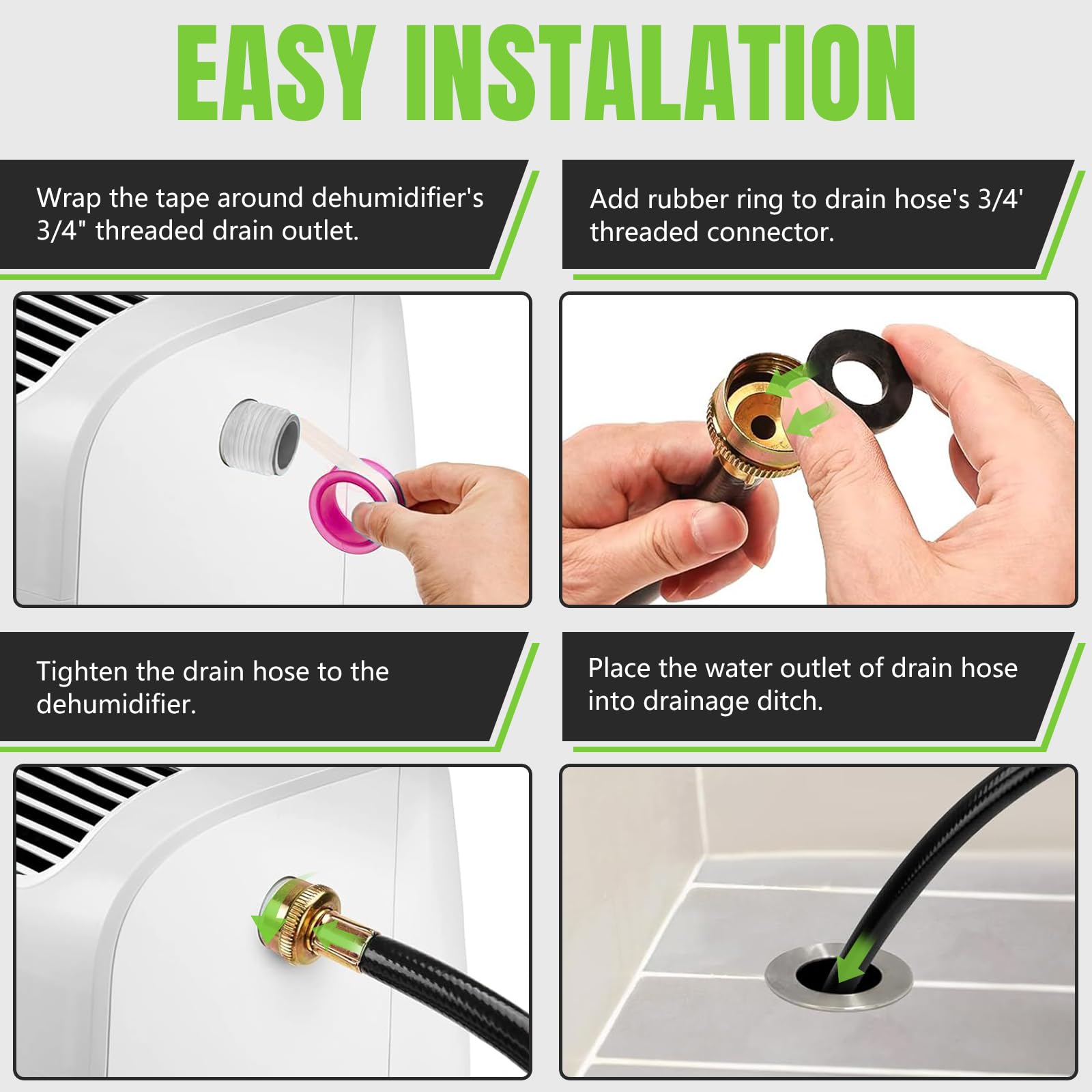 - Outstanding Compatibility: Our dehumidifier drain hose features a female threaded end that matches most 3/4 inch hose outlets, ensuring compatibility with most dehumidifier brands on the market. No matter which brand of dehumidifier you use, it can be easily connected, making it easier for you to deal with drainage issues.