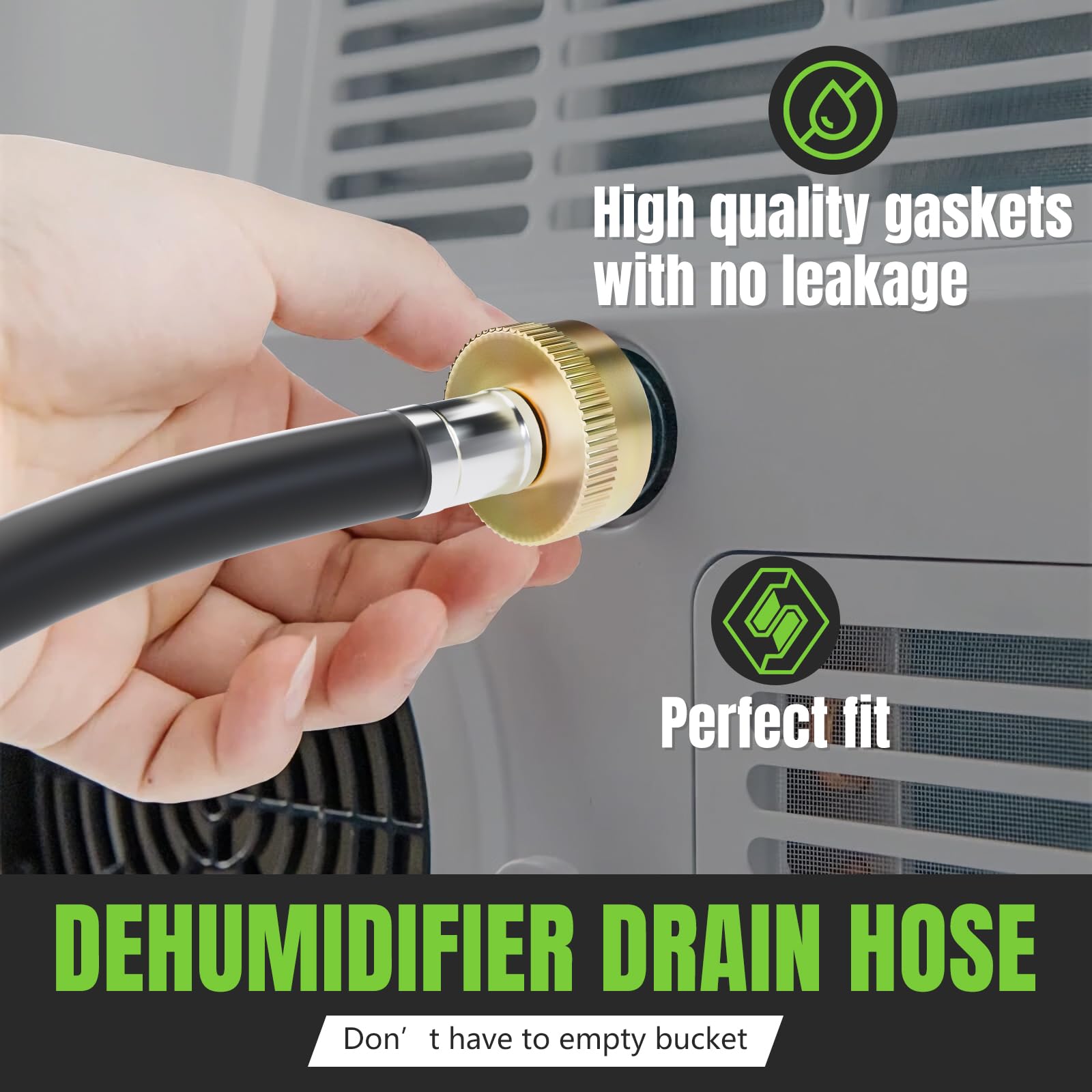 - PREMIUM QUALITY MATERIAL - EXQUISITE LEAK-PROOF DESIGN: The dehumidifier drain hose is made of high-quality, strong, durable and corrosion-resistant PVC material, which is able to withstand the test of time without the risk of leakage or bursting. The dehumidifier drain hose connector is designed with professional nickel-plated interface and rubber seals to ensure sealing performance and effectively prevent any leakage