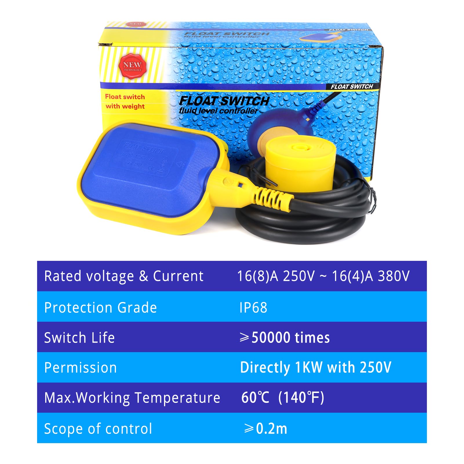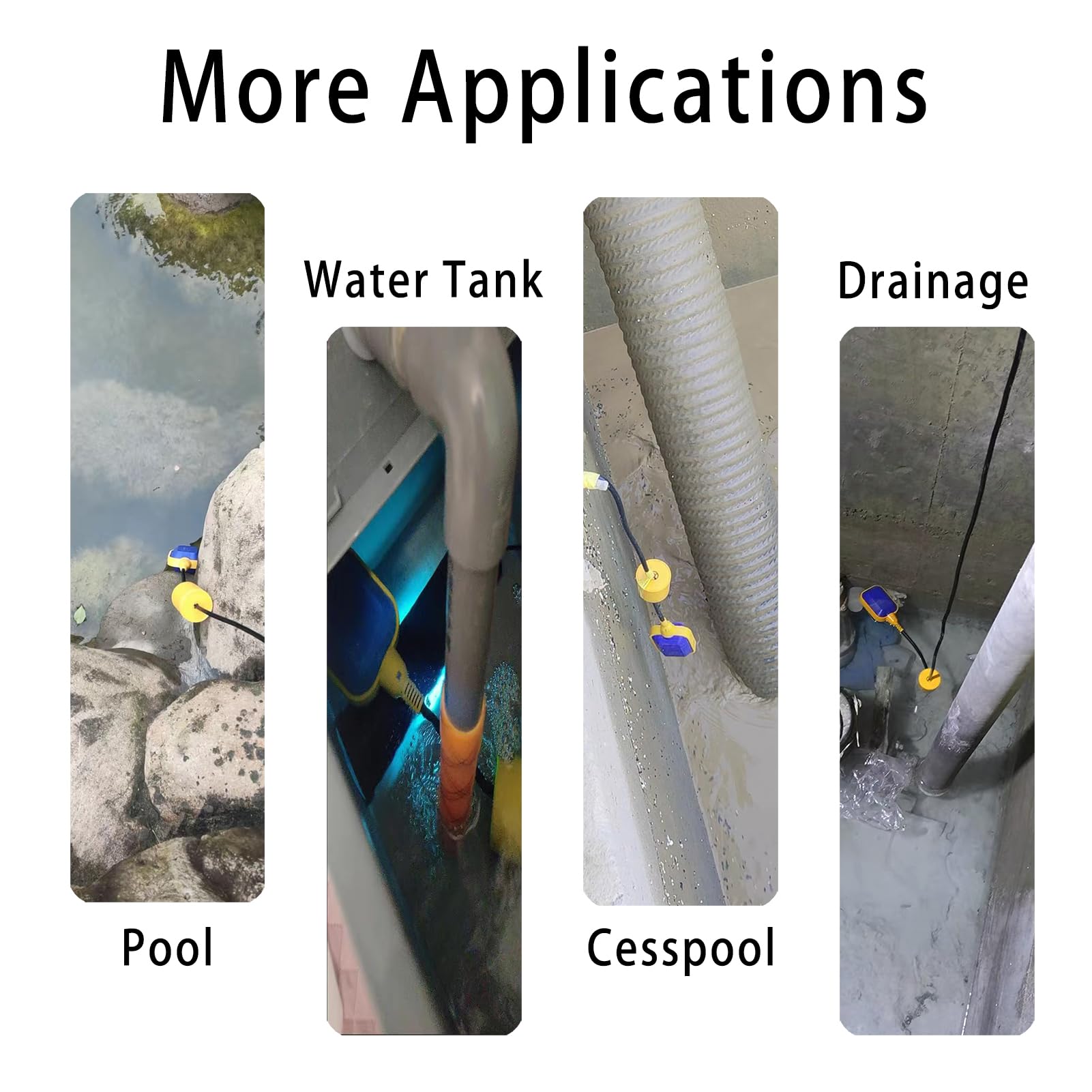 - Float switch for sump pump can control the water storage and drainage of the pool, and the operation is simple.