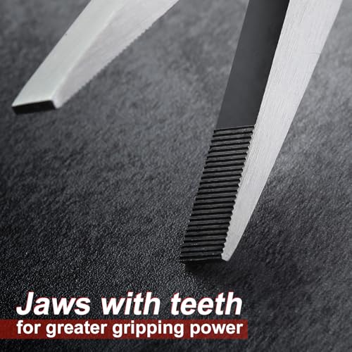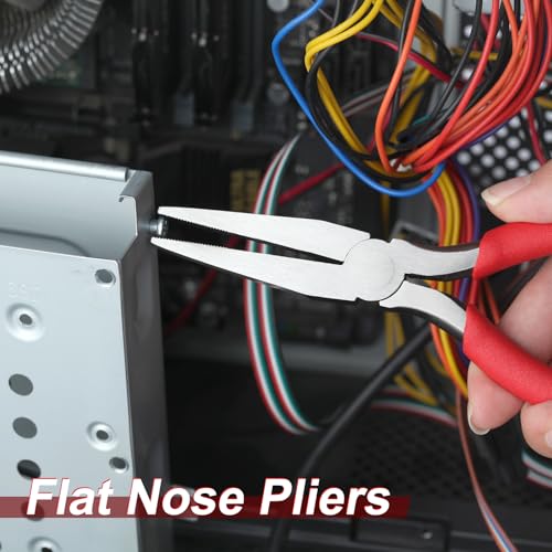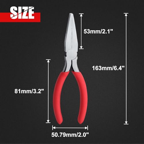 - Design:Jaws with teeth provide stronger gripping force for better gripping of small objects, bending and adjusting of wires.The handle is made of red dipped plastic handle, ergonomic design, comfortable grip, non-slip and not easy to take off.