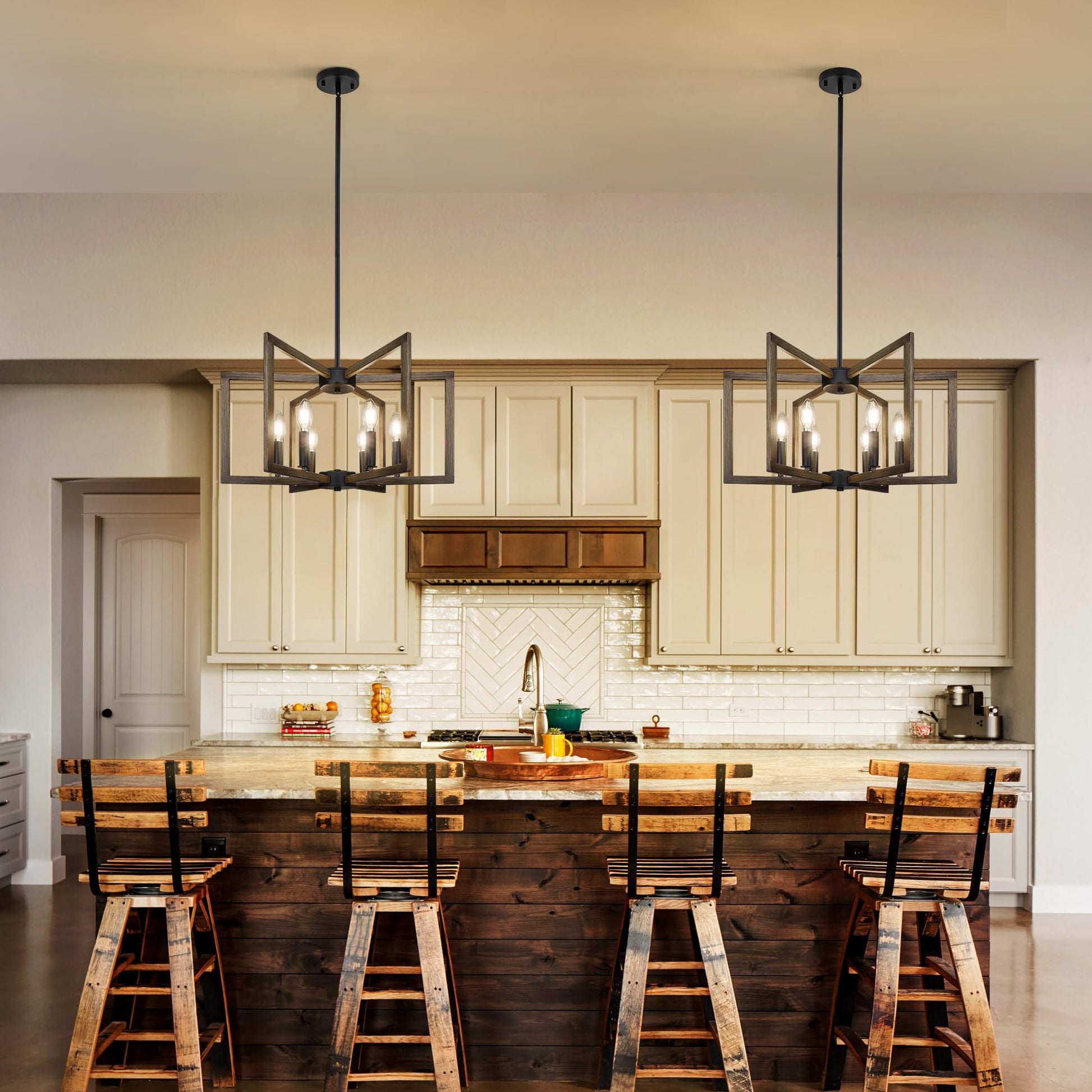 - ☼【High Quality】:Each of our farmhouse island lights for kitchen is made of sturdy and durable materials, the sturdy frame is made of more durable and long-lasting metal that is rust and scratch resistant and easy to clean. The black and wood dining room light are UL qualified, safe to use and durable.