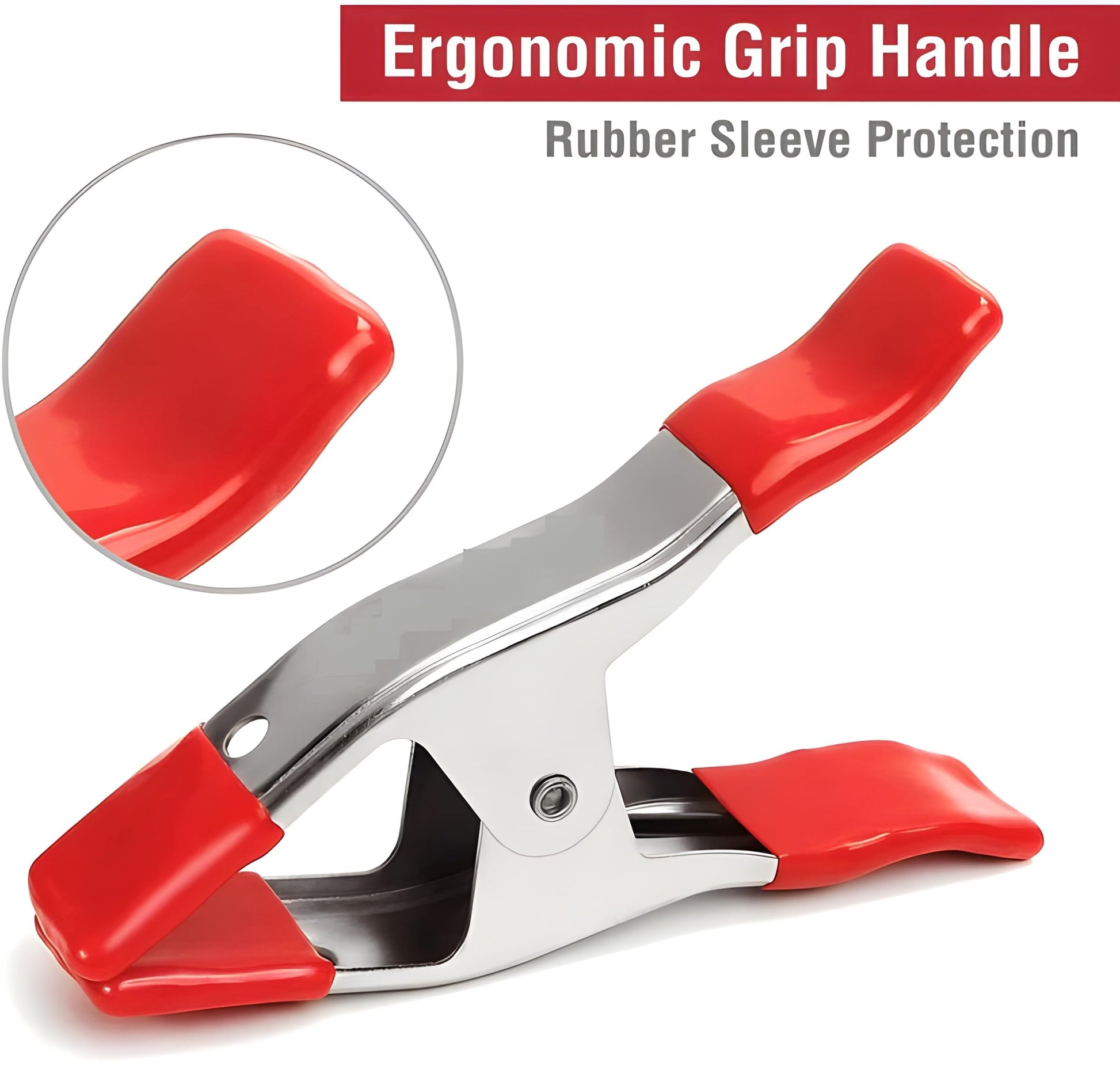 - Heavy Duty 6” Spring Clamps: Sturdy metal construction with a high-tension spring delivers strong clamping force for a wide range of applications.