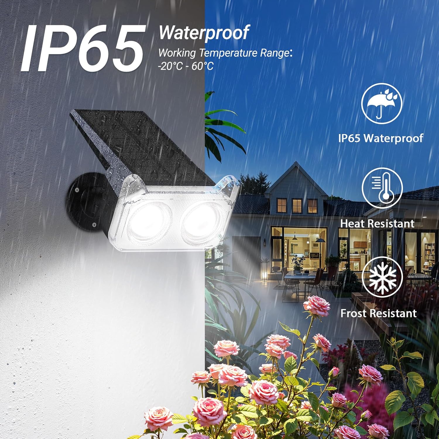 - IP65 Waterproof & Reliable Quality: Solar spotlights outdoor waterproof are designed with an IP65 waterproof rating, built to resist both high and low temperatures, ensuring they perform in any harsh outdoor environment. With a temperature range from -20°C to 60°C, solar outdoor spot lights provide consistent, reliable lighting regardless of the weather. Ideal for year-round use, solar outdoor spotlight offer long-lasting performance and are the perfect choice for all your outdoor lighting needs