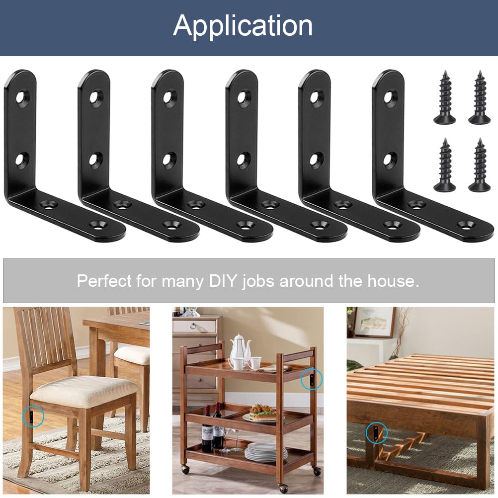 - Black l brackets are suitable for repairing and reinforcing, If your wooden furniture always shaking and buzzing, Ours support brackets can help you resolve this problem well.