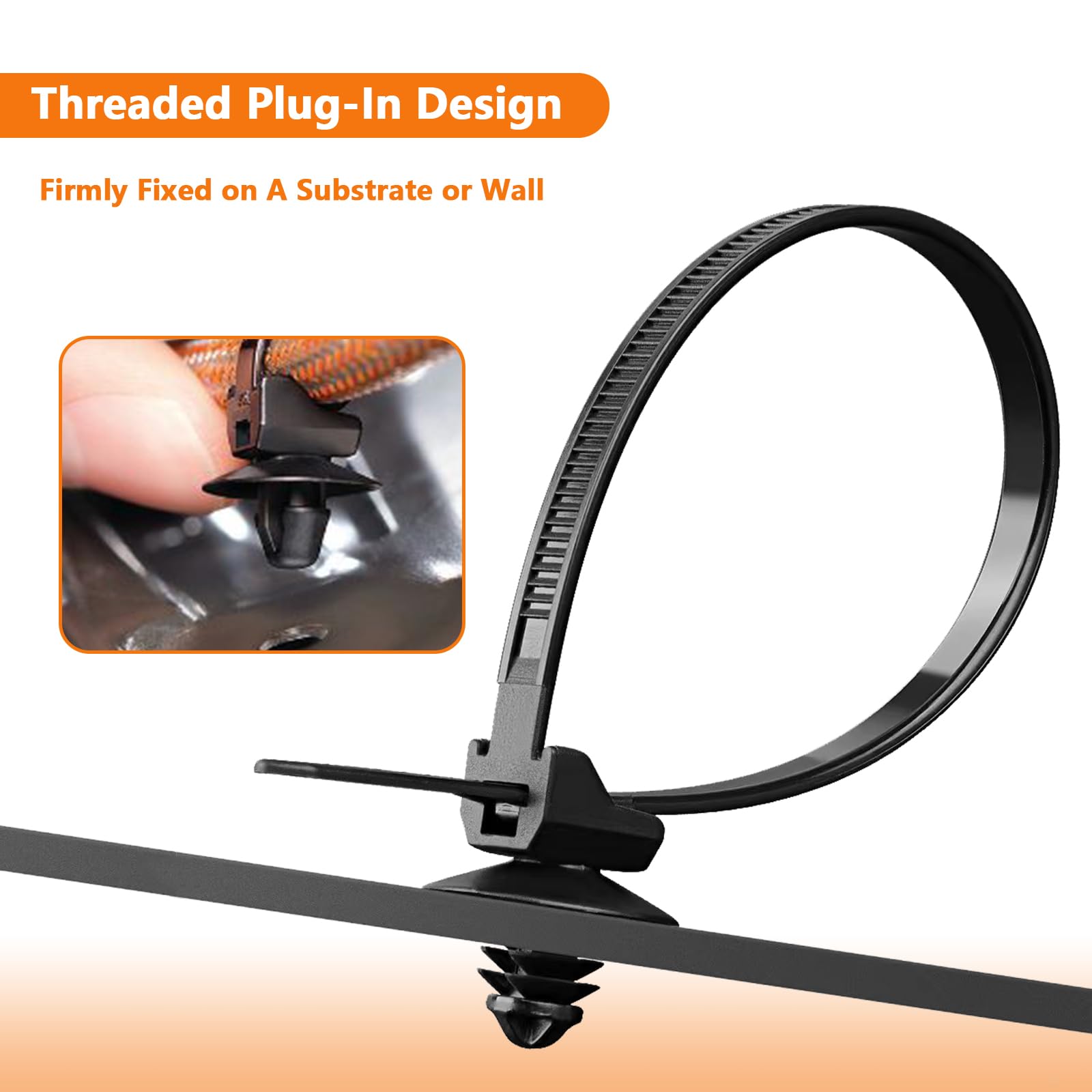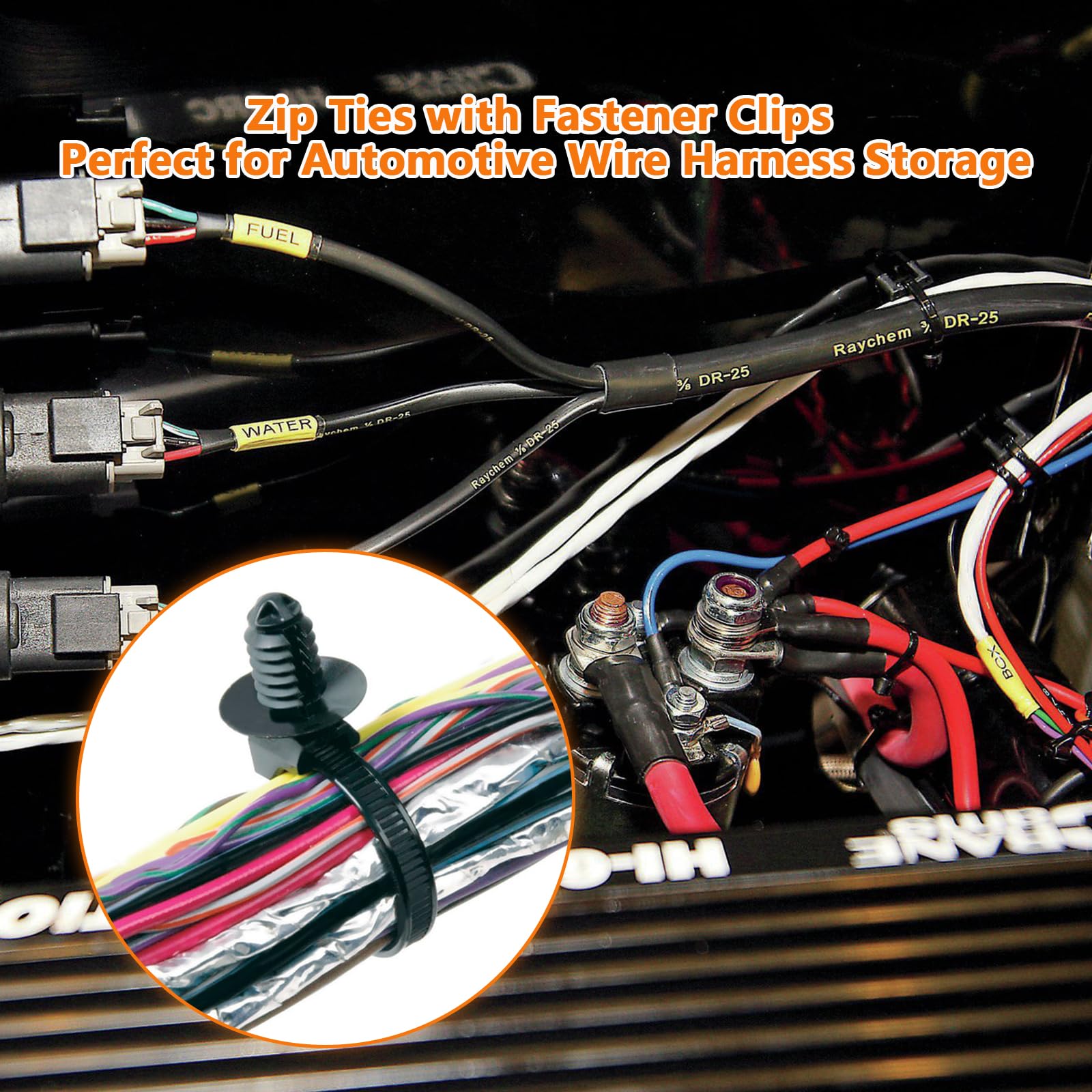 - Versatility: Push-mount aumotive zip ties tame cable chaos in all environments – from automotive harnesses to smart home networks, HVAC systems to construction sites, delivering rugged reliability through every connection.