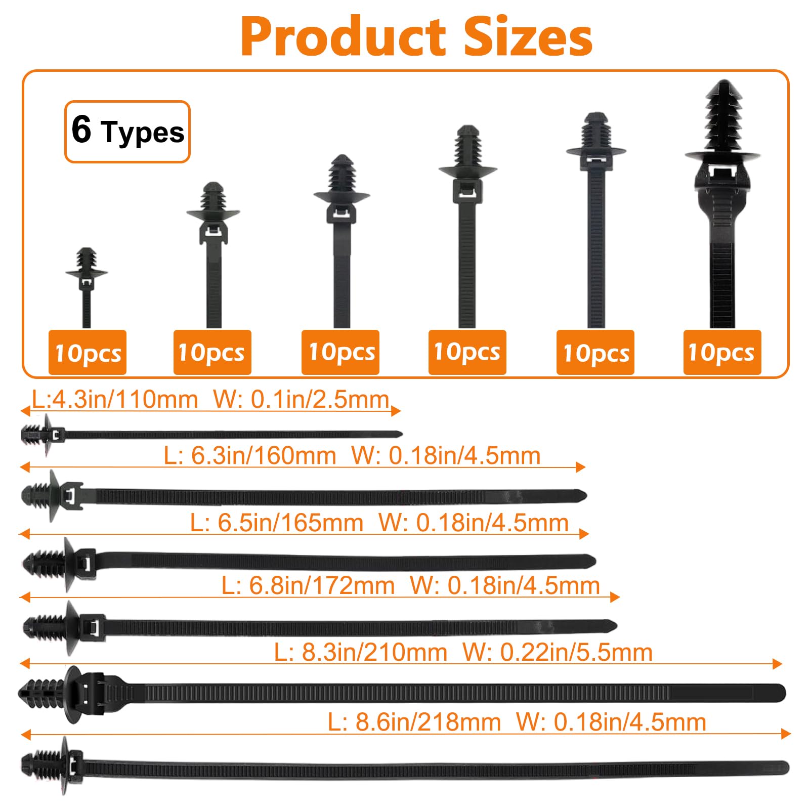 - Package Includes - 60 pieces push mount zip ties (6 types of push mount cable ties, 10 pieces for each type), enough quantity to meet your daily needs