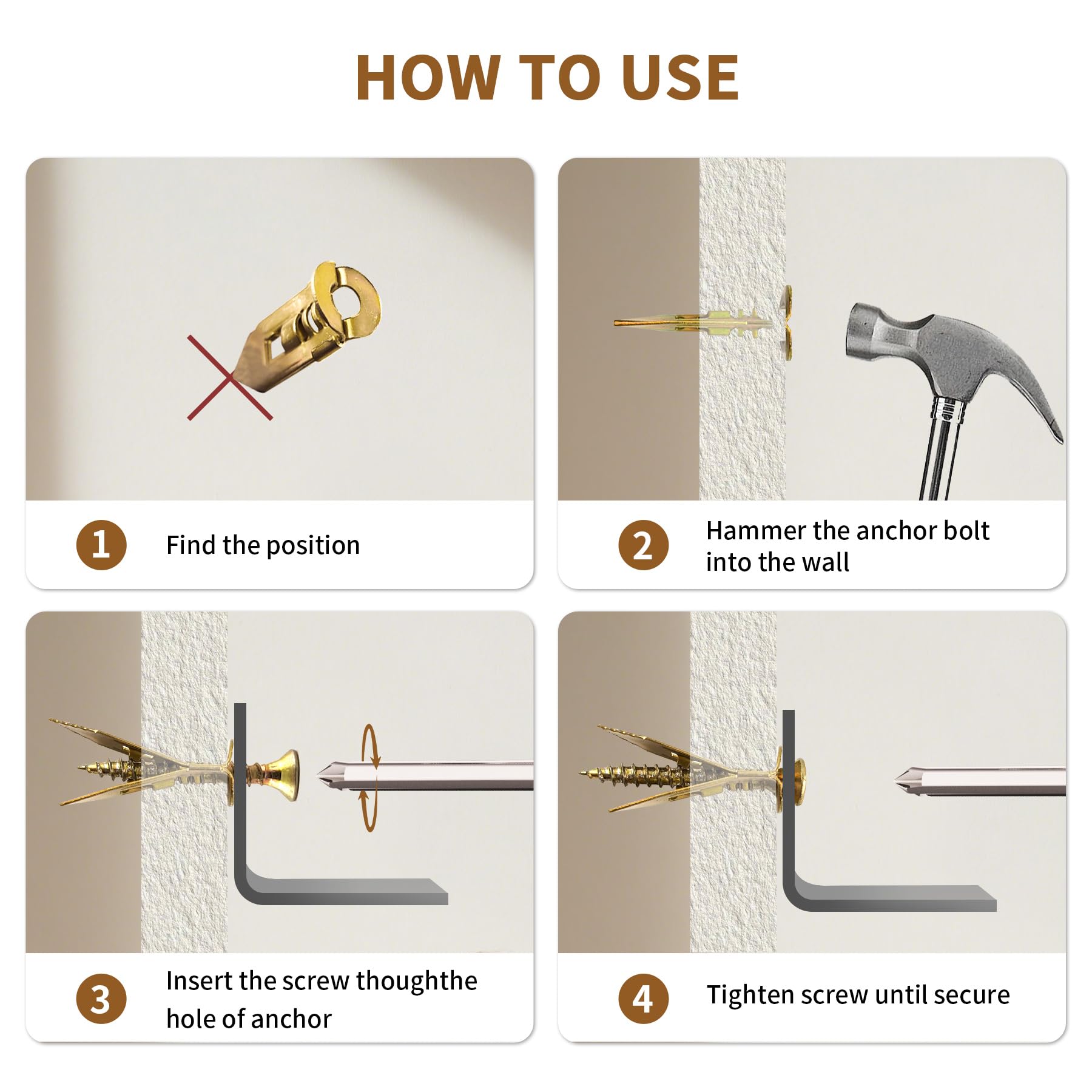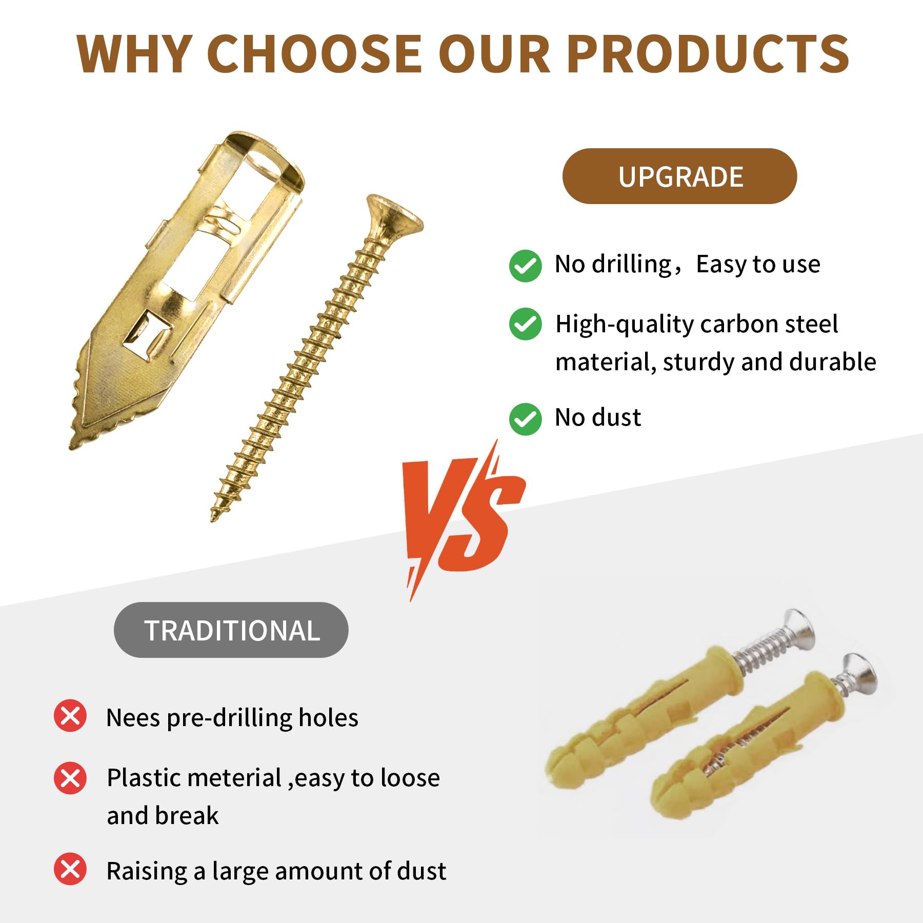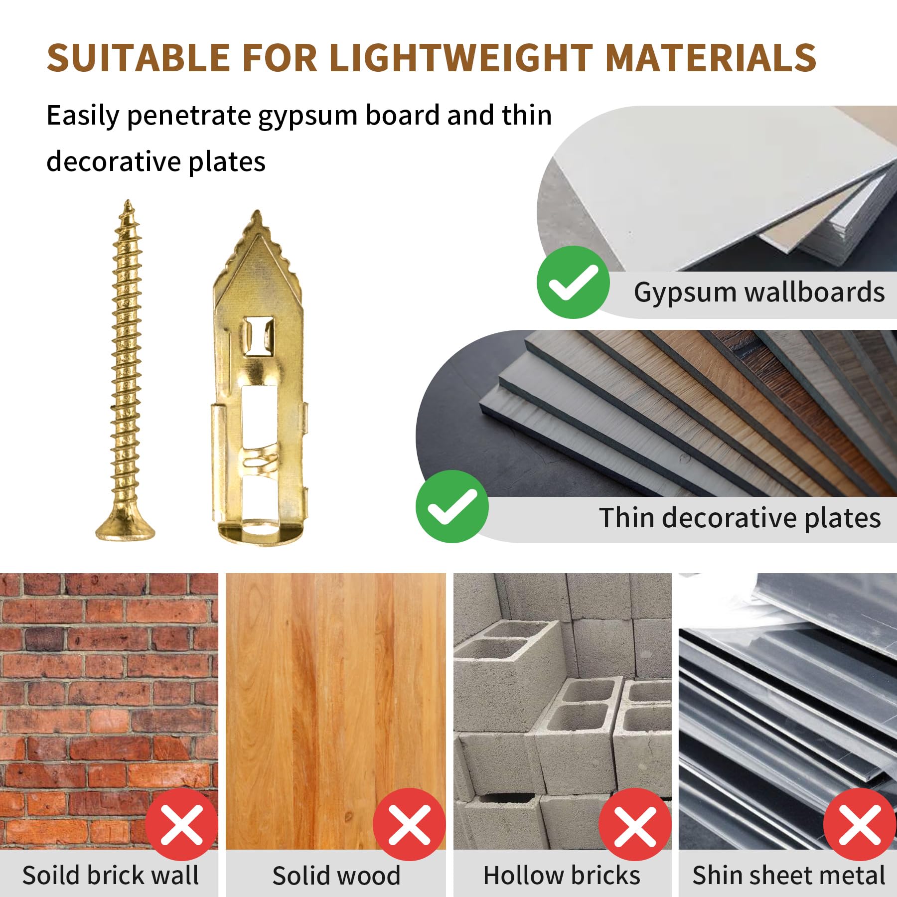 - Durable & Rust-Resistant:Drywall anchors made of zinc-plated steel with a yellow zinc coating to resist oxidation, wear, and aging.