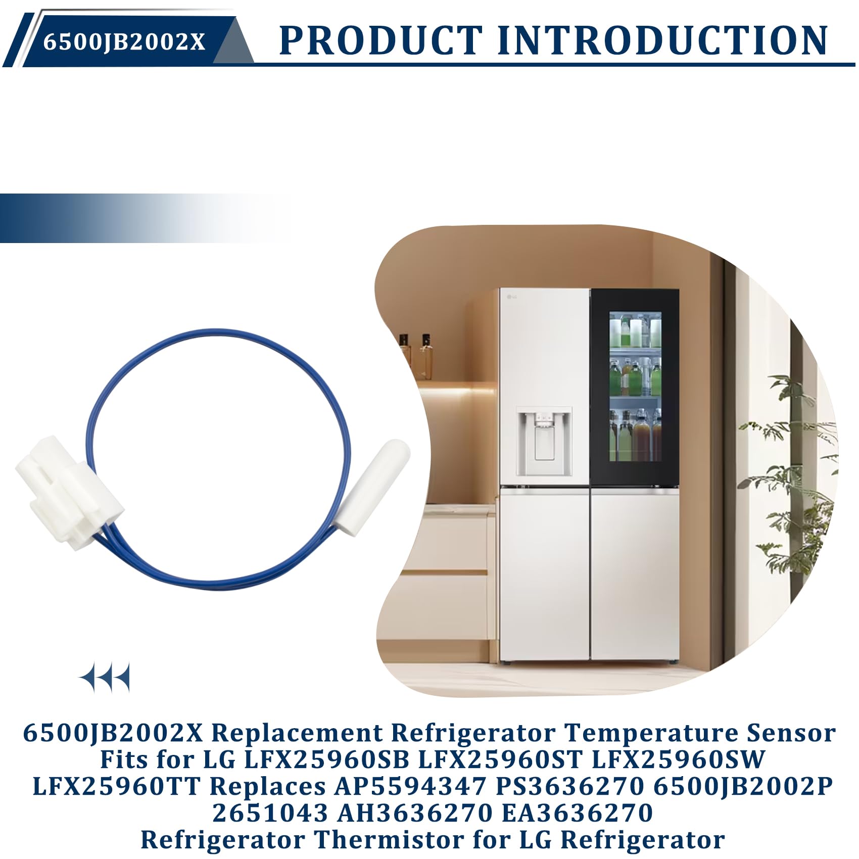 - Product Function- The 6500JB2002X Replacement Refrigerator Temperature Sensor is designed to sense the temperature inside your LG refrigerator and relay this information to the electronic control board. This real-time monitoring ensures the proper functioning of the equipment within the fridge, maintaining its optimal performance
