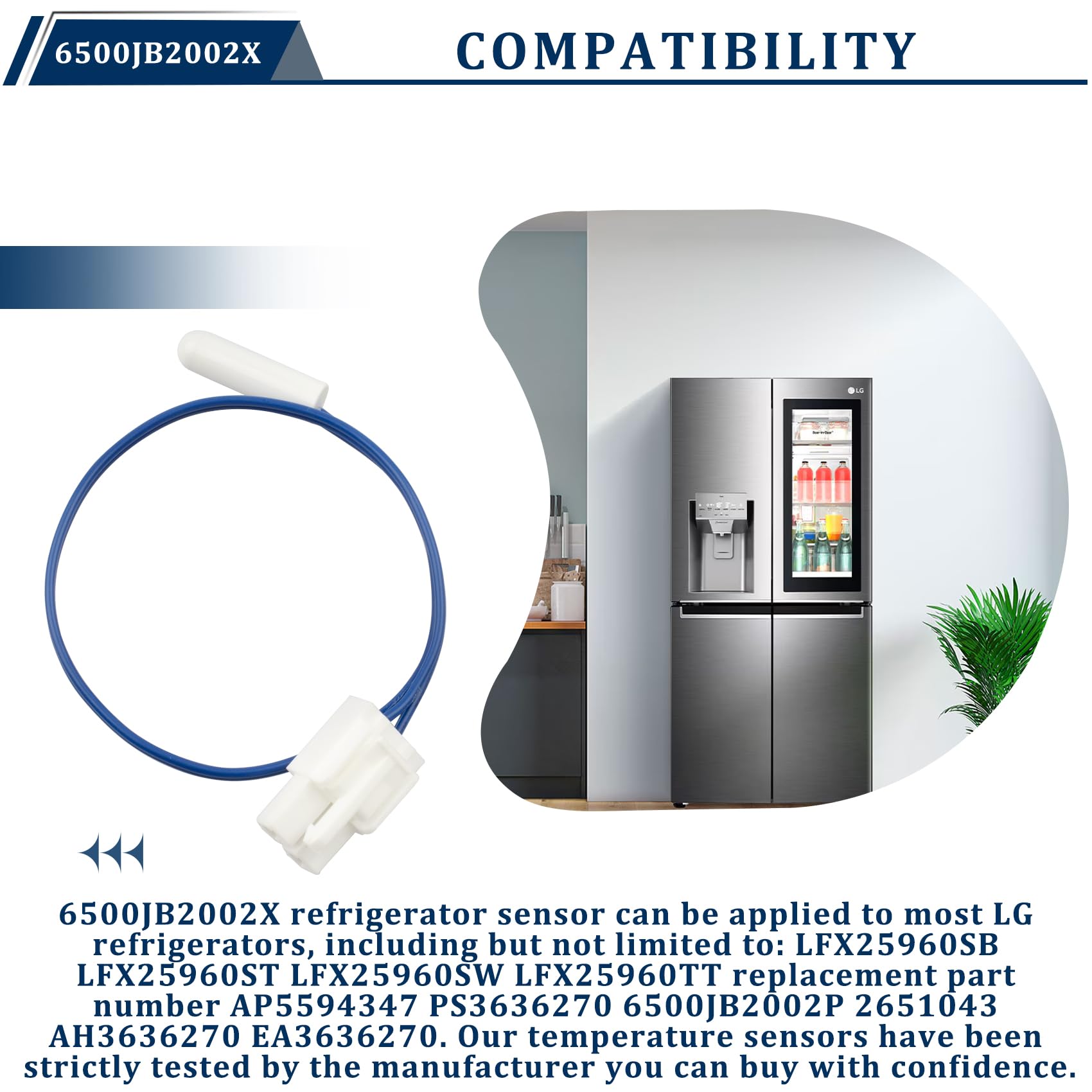 - Compatibility: 6500JB2002X refrigerator sensor can be applied to most LG refrigerators, including but not limited to: LFXS27566S, LDCS24223S, LFXS24663S, LFDS22520S, LMXS27626D, LMXS28626S, LFCS25426S, LFCS25426D, LMXS28626D, LFXS28566S, LFXS28968S, LFXS28566M, LFXS26596S, LFXS28968D/00