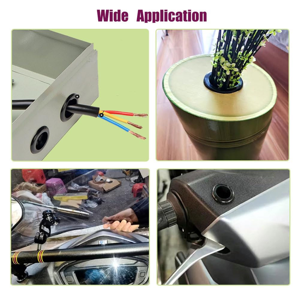 - Easy to use, design for easy installation,solid rubber grommets can be used to plug holes that are no longer in use, and if you use a knife to cut through the center of the grommet, you can easily pass wires through the holes to protect the wires and cables.