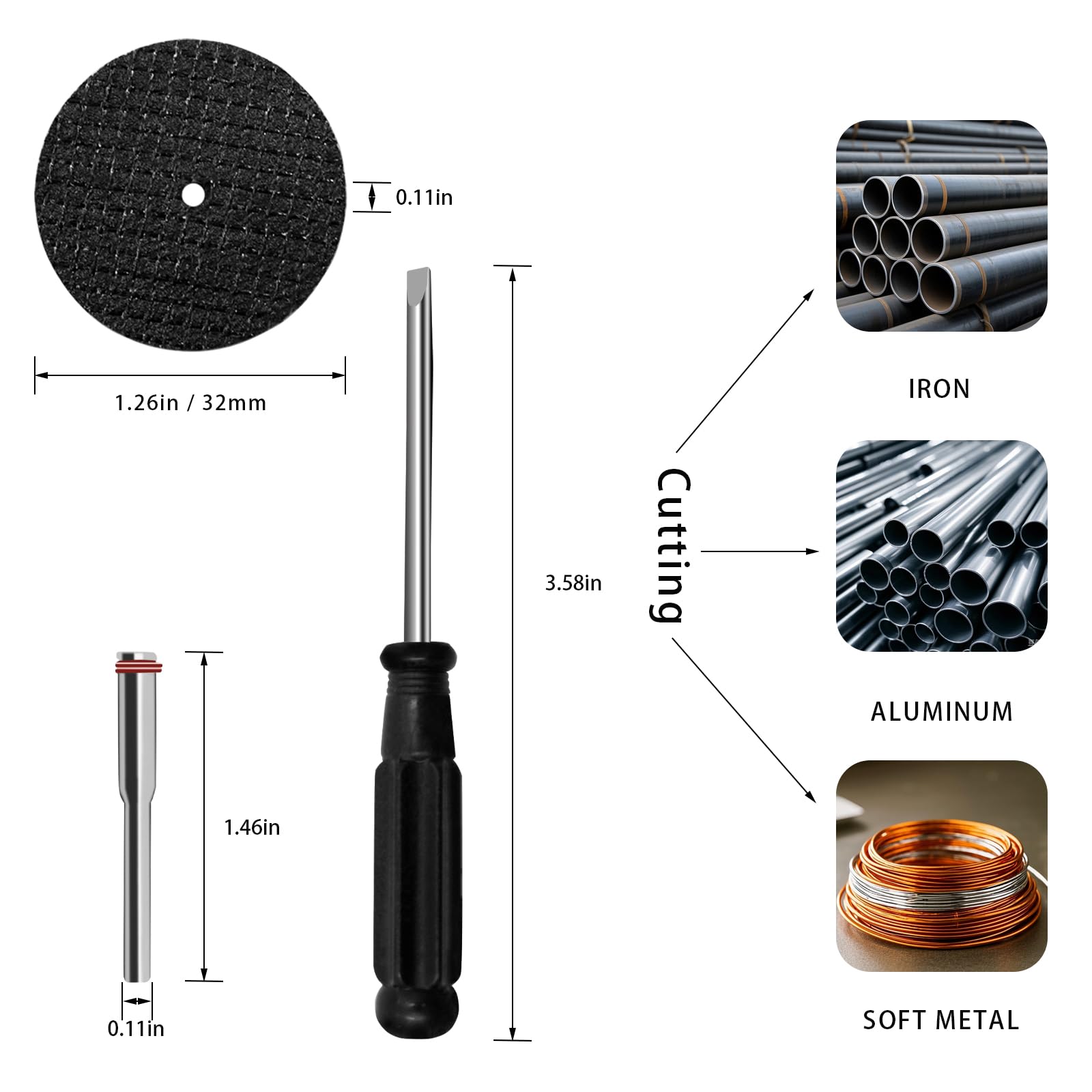 - Wide Compatibility: Rotary tools kit designed to fit most rotary tools bits with a standard (3mm/3.2mm/6mm) shank, compatible with most electric rotary tools, making it easy to switch between tasks. The cutting wheel kit comes with everything you need, it's a great tool and perfect gift for DIY enthusiasts and professionals.