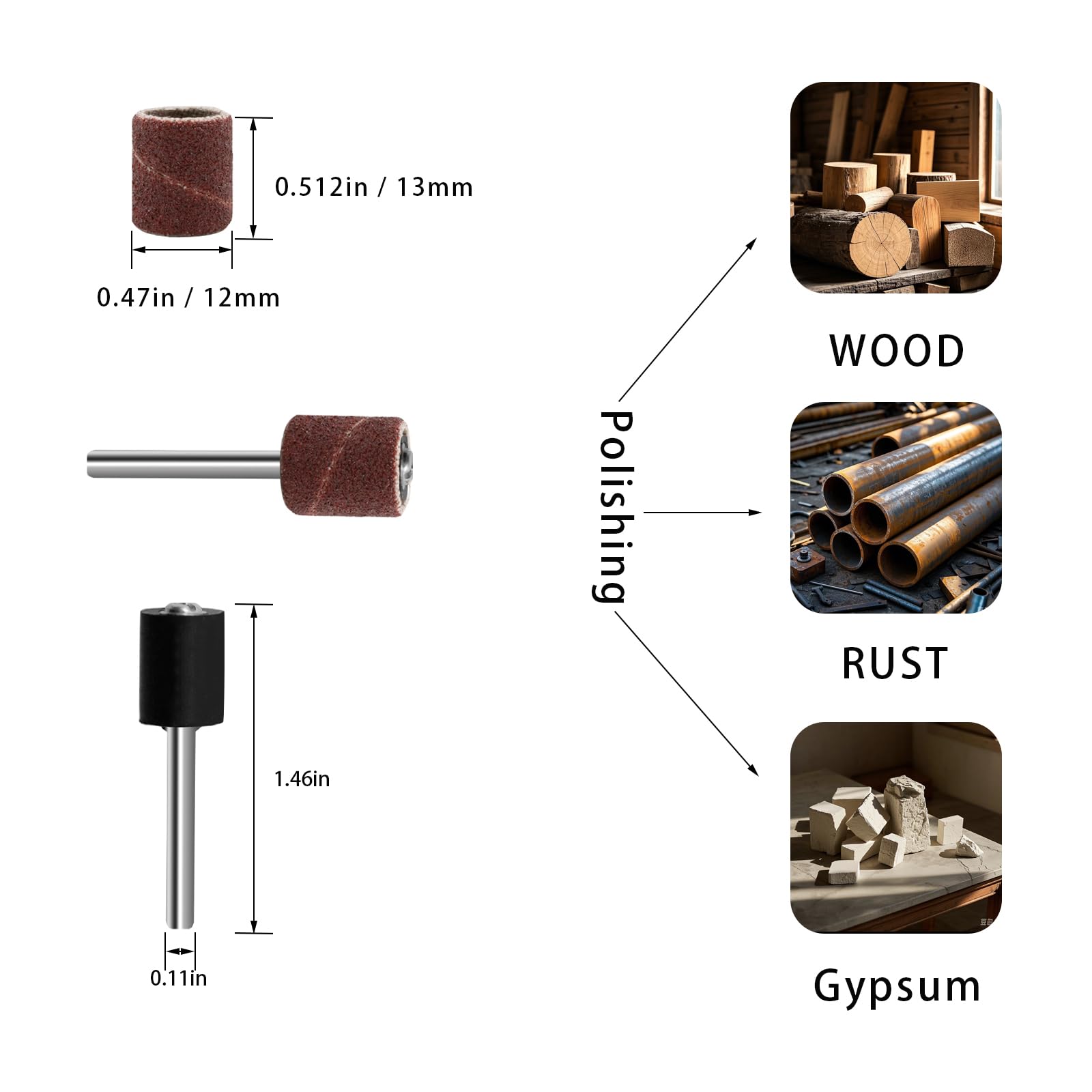 - 20Pcs Sanding drum: Sanding drum is made of emery cloth and fine sand, with alumina as the basic material, 120 grit aluminum oxide sanding drum use for grind, smooth, level and polish workpieces. And comes with 2Pcs 3mm shank.